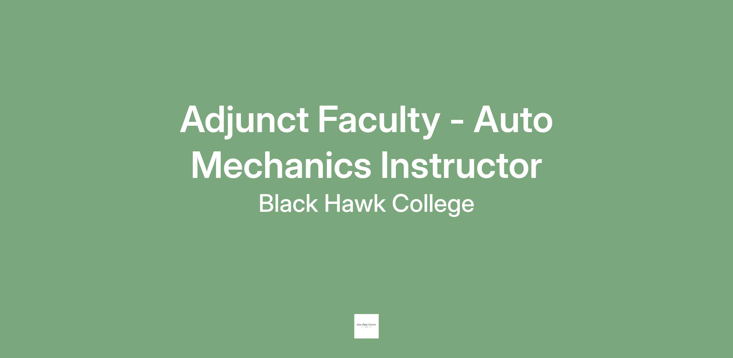 Black Hawk College seeks Adjunct Faculty/Part-time Instructor in Auto Mechanics at East Campus in Galva, IL