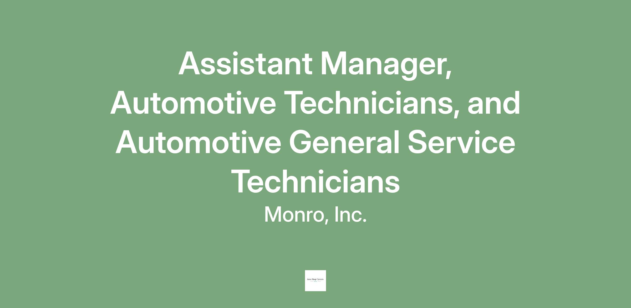 Monro, Inc. is an equal opportunity employer and affords equal opportunity to all applicants for all positions without regard to race, color, religion, sex, national origin, disability status, protected veteran status, or any other characteristic protected by law.