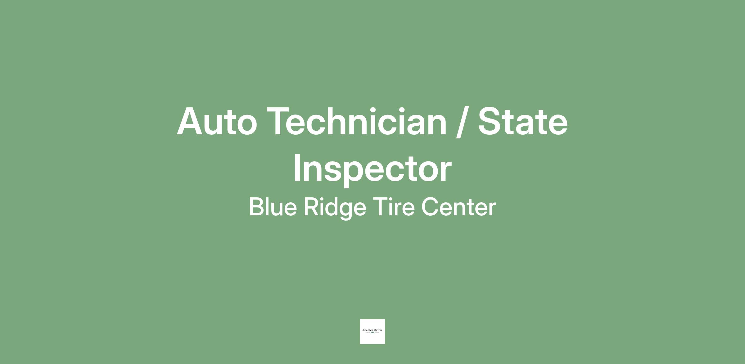 Blue Ridge Tire Center, a family owned business in Salem, VA, is looking for a full time Auto Technician / State Inspector. Qualified candidates should have the ability to perform basic care and maintenance including oil changes, tire rotation and be able to perform repairs to manufacturer and customer specifications. Candidate should also be qualified to perform state inspections and explain automotive problems and repairs to clients. This position is Monday through Friday, holidays off with potential overtime during the work week. Company will assist in getting state inspector license if needed.