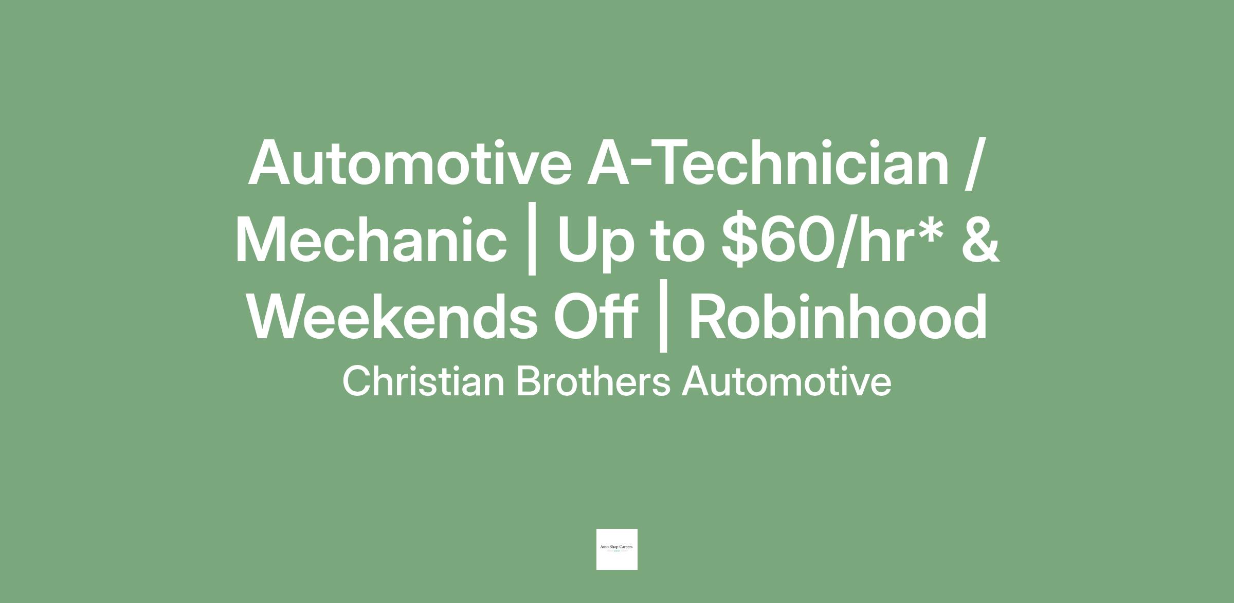 All of your information will be kept confidential according to EEO guidelines. Christian Brothers Automotive is an Equal Opportunity Employer. Christian Brothers Automotive locations practice "At-will" employment practices.