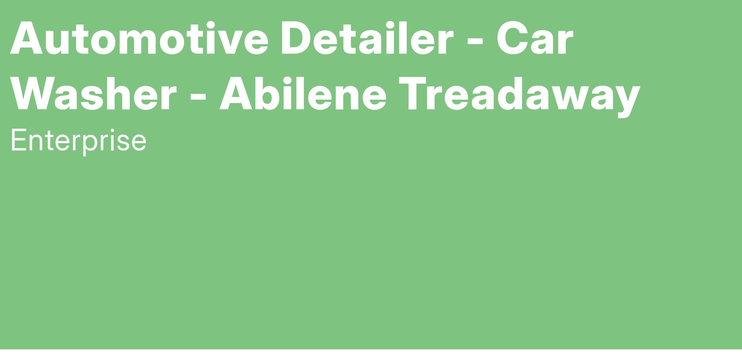 Enterprise Mobility is seeking responsible, dedicated people to join our team as Full Time Automotive Detailers. This position pays $15.00/ hour and is located on 642 South Treadaway Blvd., Abilene, TX 79602.