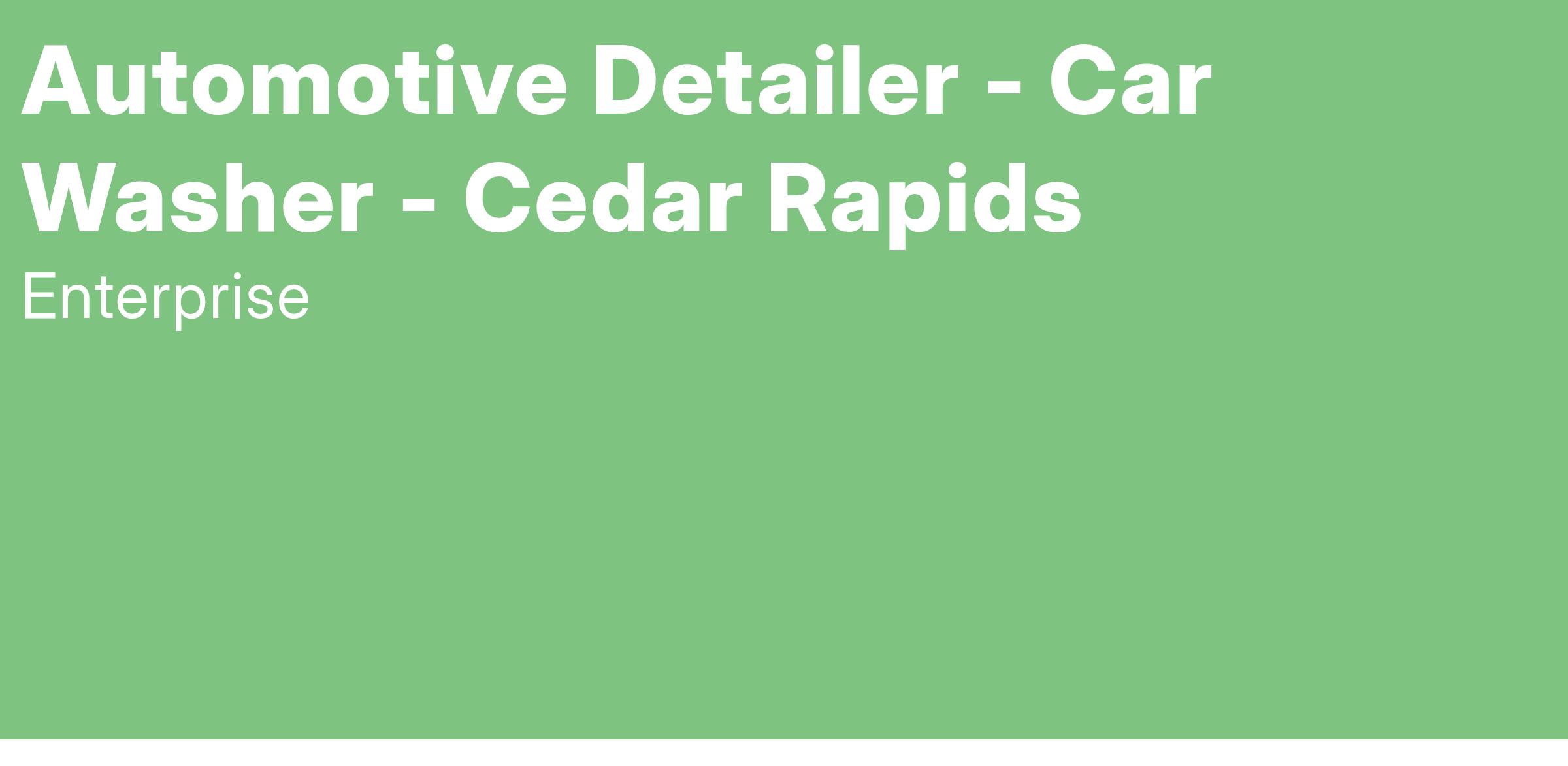 Enterprise Mobility is seeking a responsible, dedicated person to join our team as a full time Automotive Detailer. This position pays $16 / hour and is located at 1800 Dodge Rd NE, Cedar Rapids, IA 52402.