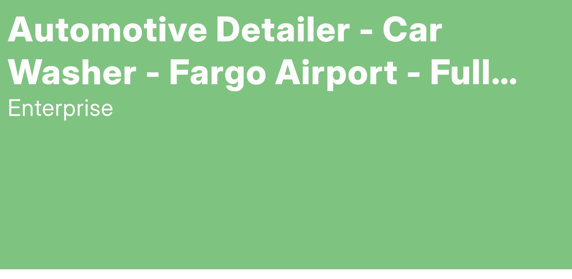 Enterprise Mobility is seeking a responsible, dedicated person to join our team as a full time Automotive Detailer. This position pays $18 / hour and is located at 2801 32ND AVE N FARGO, ND 58102.