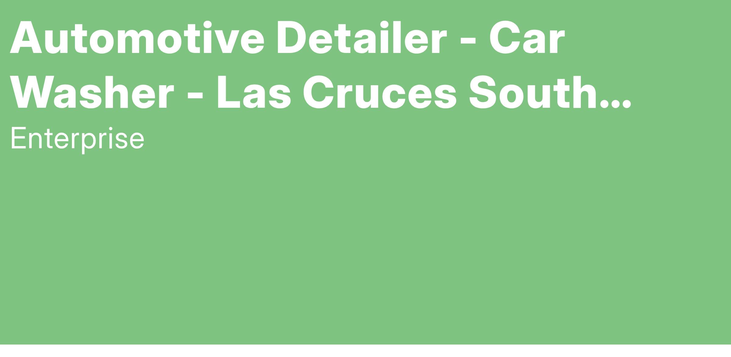 Enterprise Mobility is seeking a responsible, dedicated person to join our team as a full time Automotive Detailer. The starting rate of pay is $15 / hour based on a 40 hour work week. Located at 1340 S Valley Dr. Las Cruces, NM 88005.