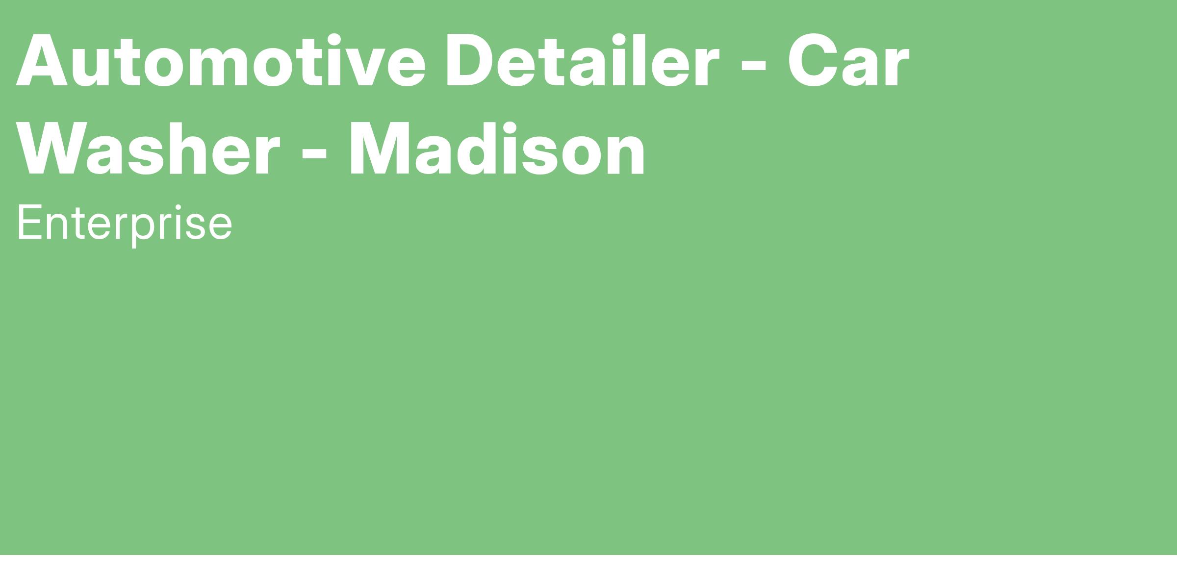 Enterprise Mobility is seeking responsible, dedicated people to join our team as a full time Automotive Detailer. This position pays $17.50 / hour and is located at 128 Main Street Madison, NJ 07940.