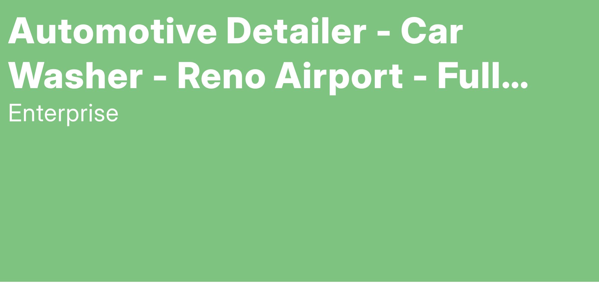 Enterprise Mobility is seeking a responsible, dedicated person to join our team as a full time Automotive Detailer. This position pays up to $19 / hour ($18.50/hr + production bonuses) and is located at the Reno Airport, 2001 E Plumb Ln, Reno NV 89502.