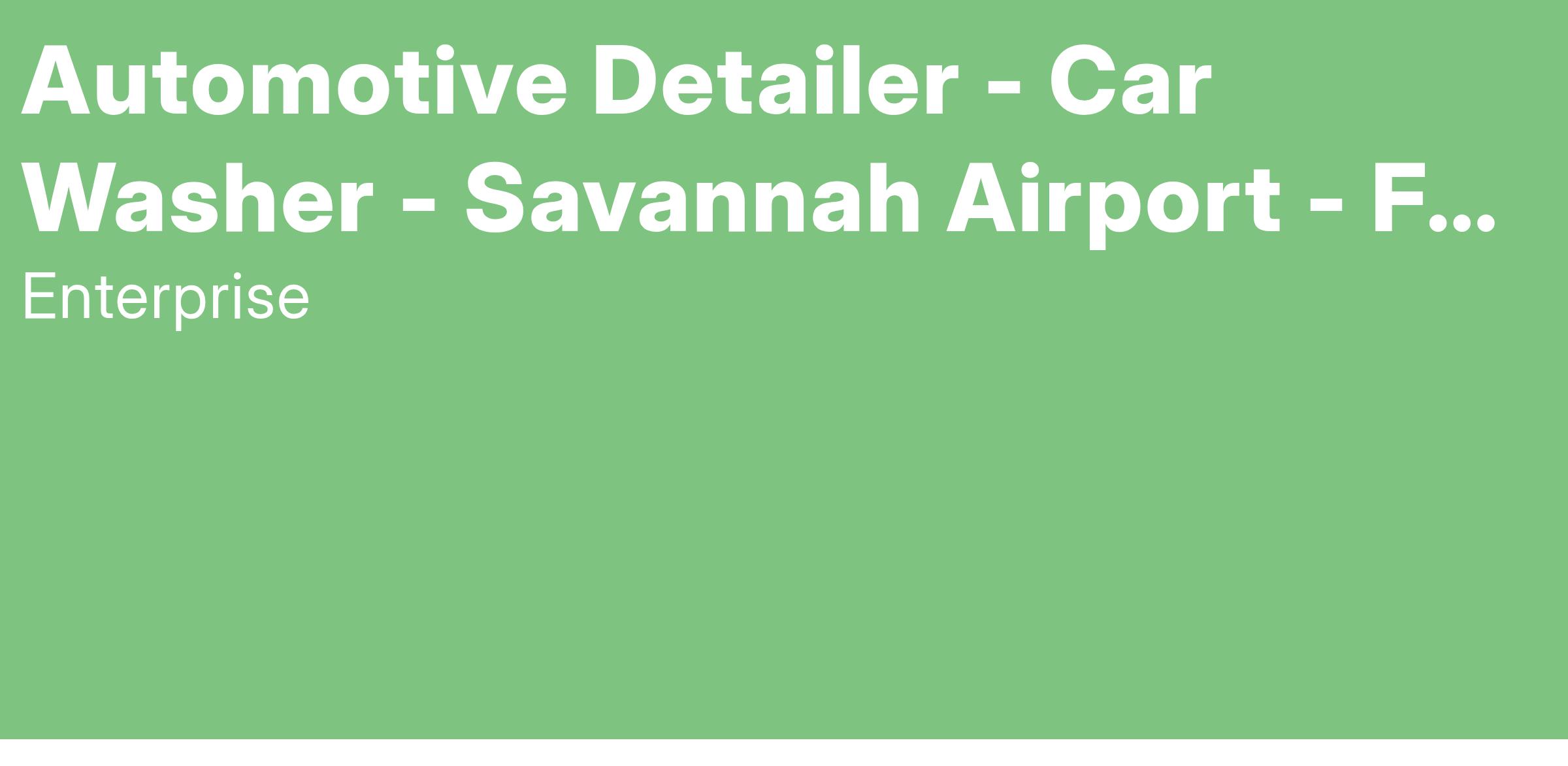 Enterprise Mobility is seeking a responsible, dedicated person to join our team as a Full-Time Automotive Detailer. This position pays $18.50 / hour and is located at the Savannah International Airport: 436 Airways Ave Savannah, GA 31408.