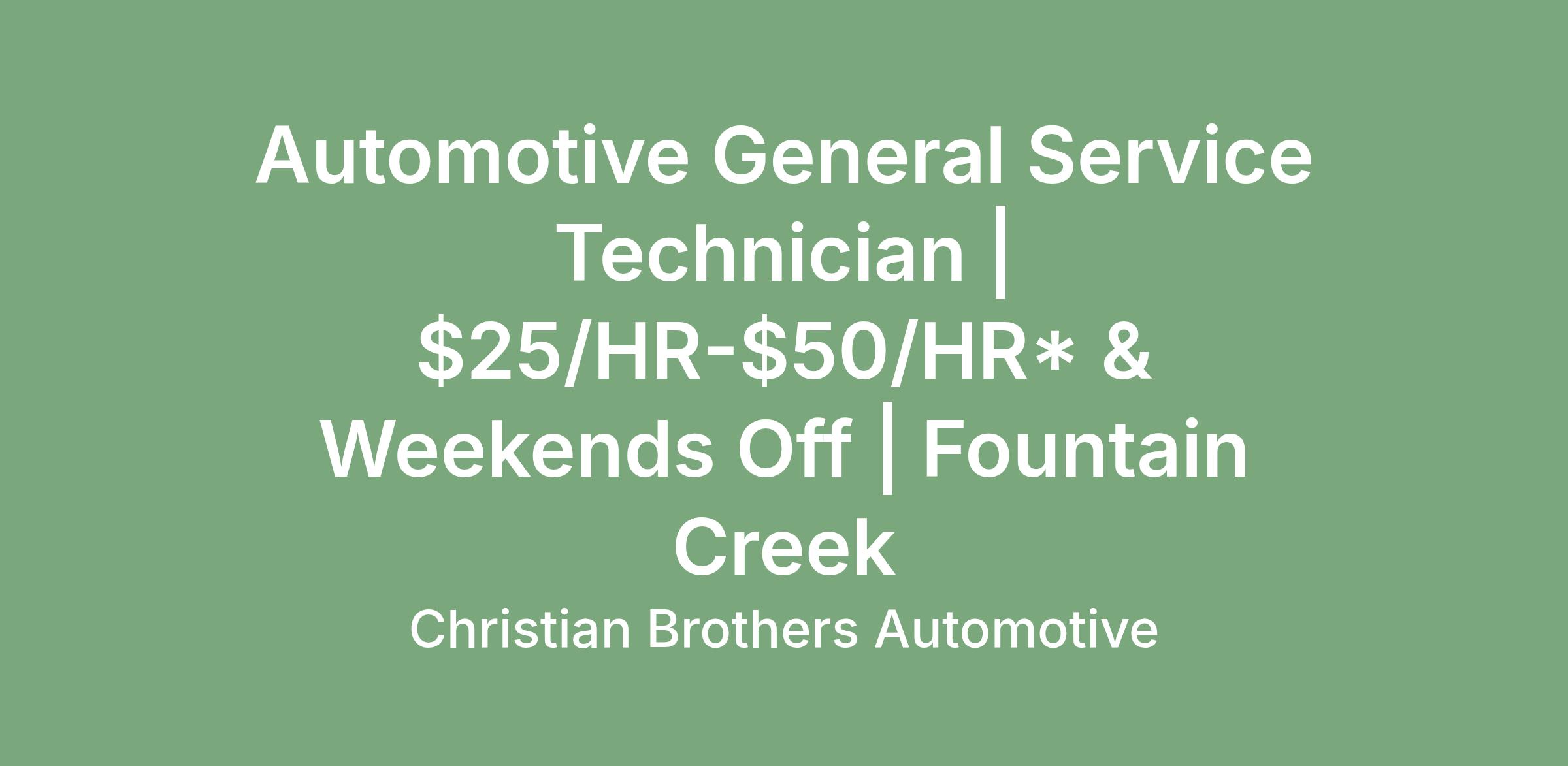 All of your information will be kept confidential according to EEO guidelines. Christian Brothers Automotive is an Equal Opportunity Employer. Christian Brothers Automotive locations practice "At-will" employment practices.