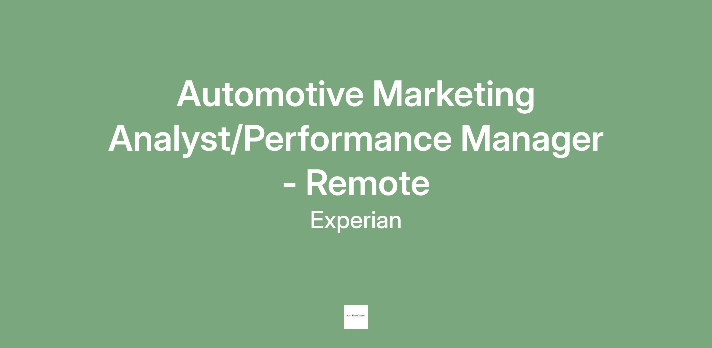 The Analytics/Performance Manager is a trusted advisor to Dealer and Agency clients and an expert in automotive marketing and the Experian Marketing Engine solution. You will work with EME clients to help them use the tool to execute their marketing plans and programs, both short and long-range, to ensure profit growth and goal attainment. You will partner with clients on marketing strategies, data analysis, and audience creation. You aim to exceed expectations from servicing our partners to collaborating with internal teams.