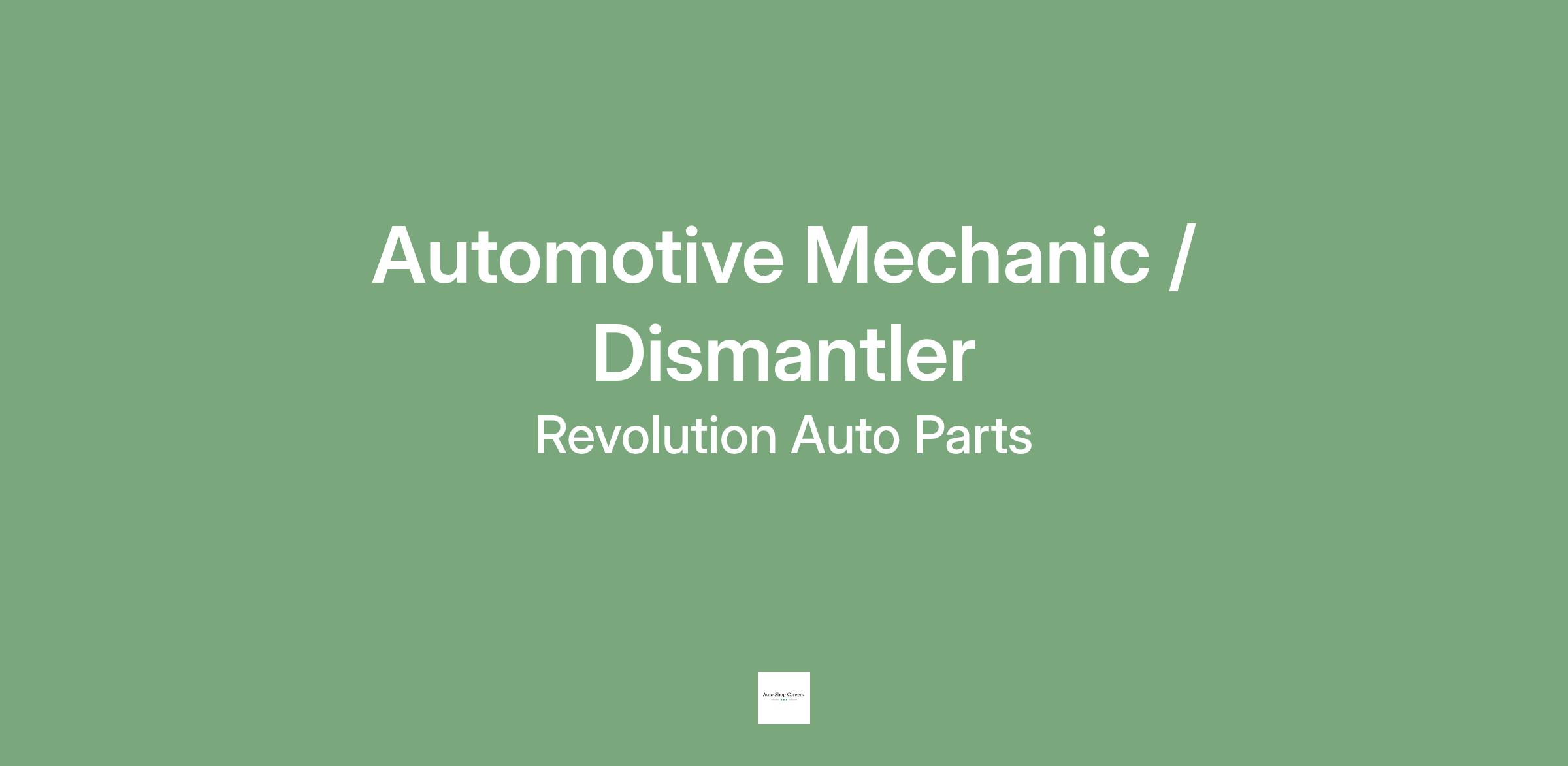 Job Summary: We are looking for outstanding individuals to join our growing team. If you enjoy taking things apart, have automotive aptitude and love cars, then we are the company for you. This is a Monday through Friday position with no weekend work. We also offer a great benefit package. Apply today and get your career started with Revolution Auto Parts!