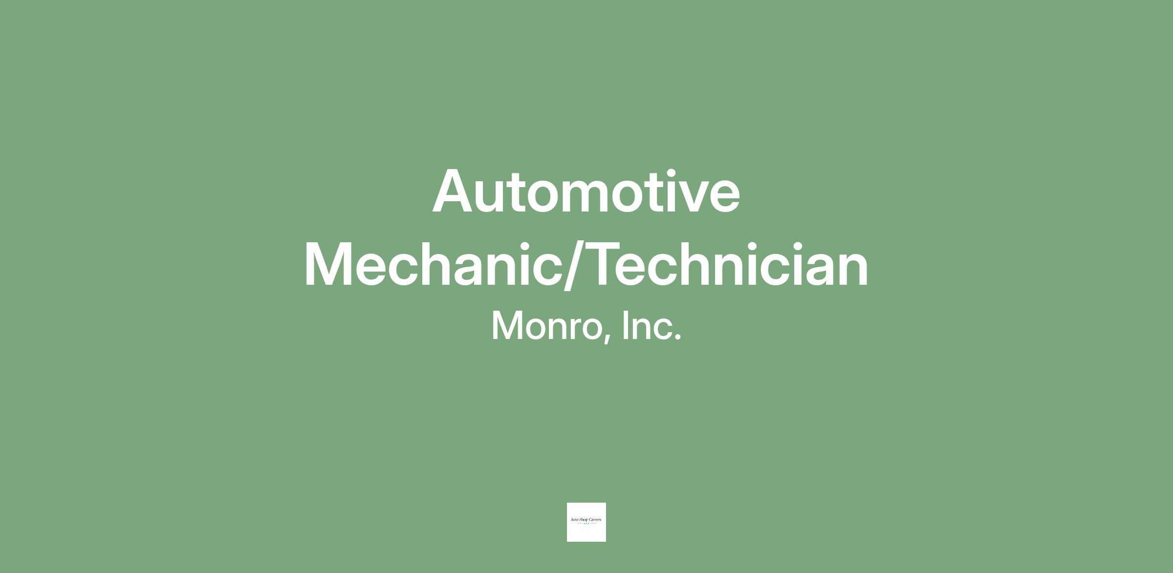 Monro, Inc. is an equal opportunity employer and affords equal opportunity to all applicants for all positions without regard to race, color, religion, sex, national origin, disability status, protected veteran status, or any other characteristic protected by law.
