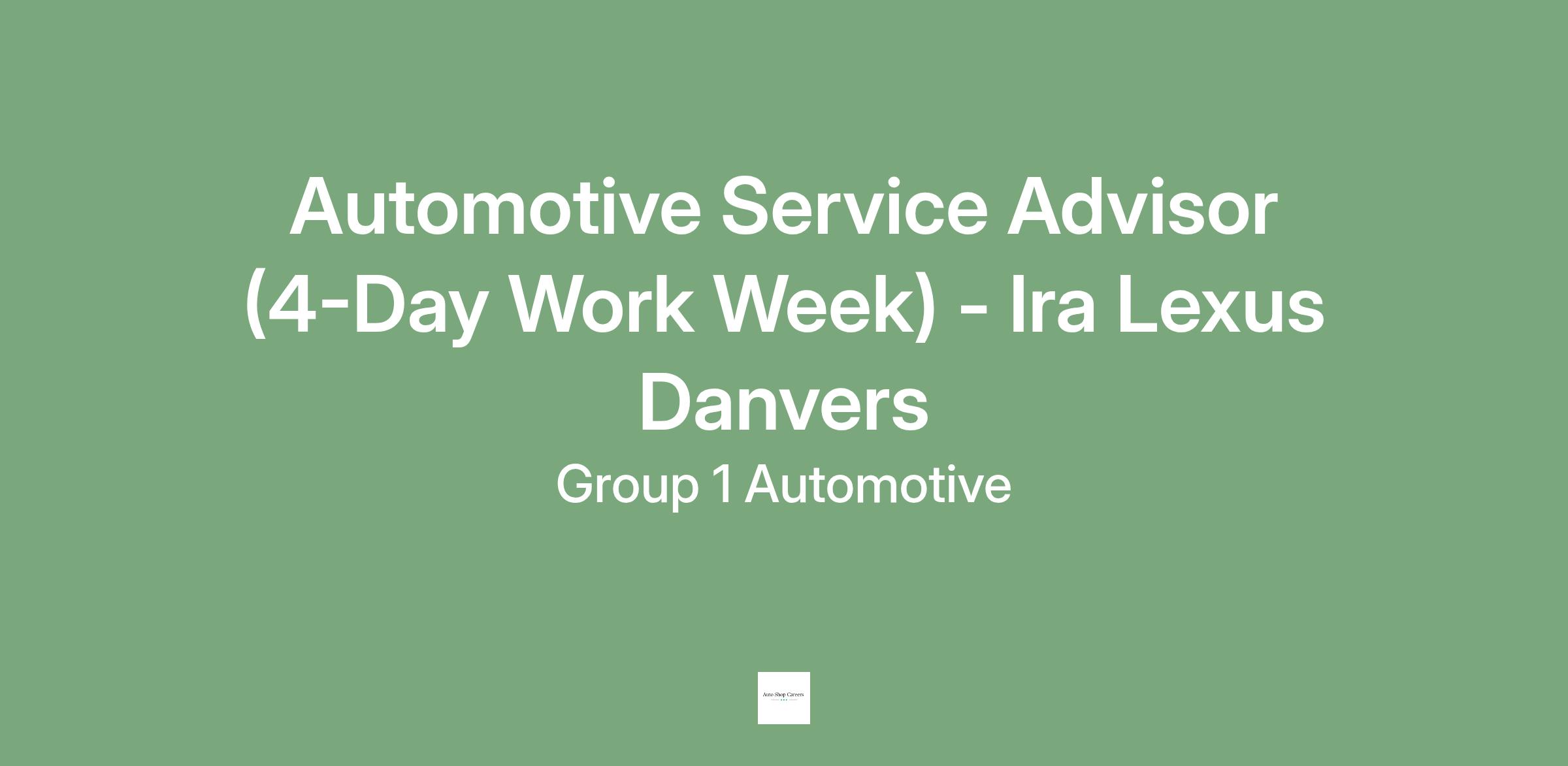 Ira Lexus of Danvers, a proud member of Group 1 Automotive—a Fortune 250 company and industry leader in automotive retail—is expanding our team! We're looking for passionate, customer-focused Automotive Service Advisors to represent the iconic Lexus brand at our high-performing dealership.