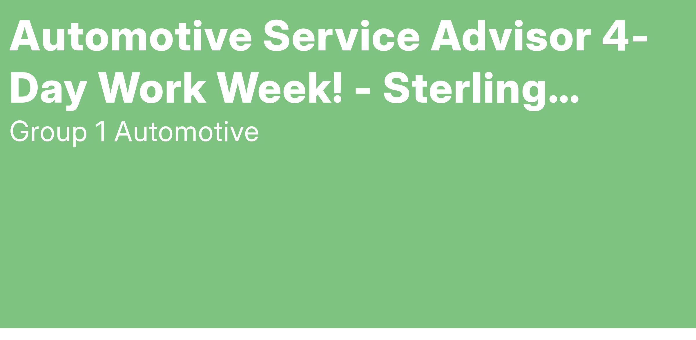 Sterling McCall Buick GMC is part of the fast growing Group 1 Automotive, a leader in automotive retail sales and service in the Houston area. We are growing and needing to add a Quality Automotive Service Advisor to work with Quality Dealership representing the Quality of the Buick GMC Product! Our Service Advisor should be passionate about customer service and enjoy interacting with people throughout the working day.