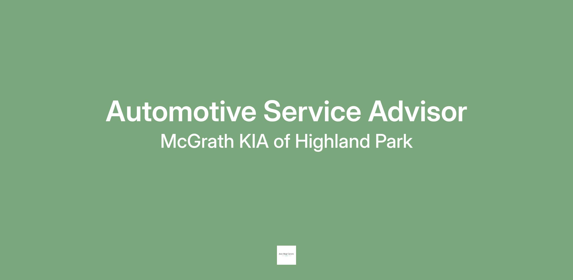 McGrath Kia of Highland Park is a leader in the automotive retail sales and service sector, and we're looking to add a Service Advisor. If you have what it takes to join our award winning team, apply today!