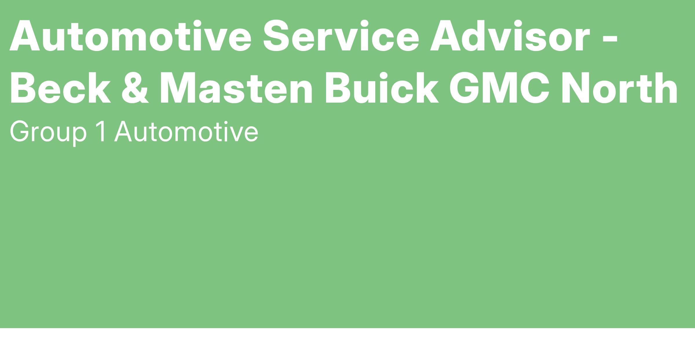 Beck & Masten North is part of the fast growing Group 1 Automotive, a leader in automotive retail sales and service in the Houston area. We are growing and looking to add Quality Experienced Automotive Service Advisors to work with our Quality Dealership representing the Quality of Buick and GMC! Our Service Advisor should be passionate about customer service and enjoy interacting with people throughout the working day. We have the largest volume BUICK and GMC dealership in the state of TEXAS and we have huge service department with over 40 Technicians and we are growing with 100 plus Repair orders daily.