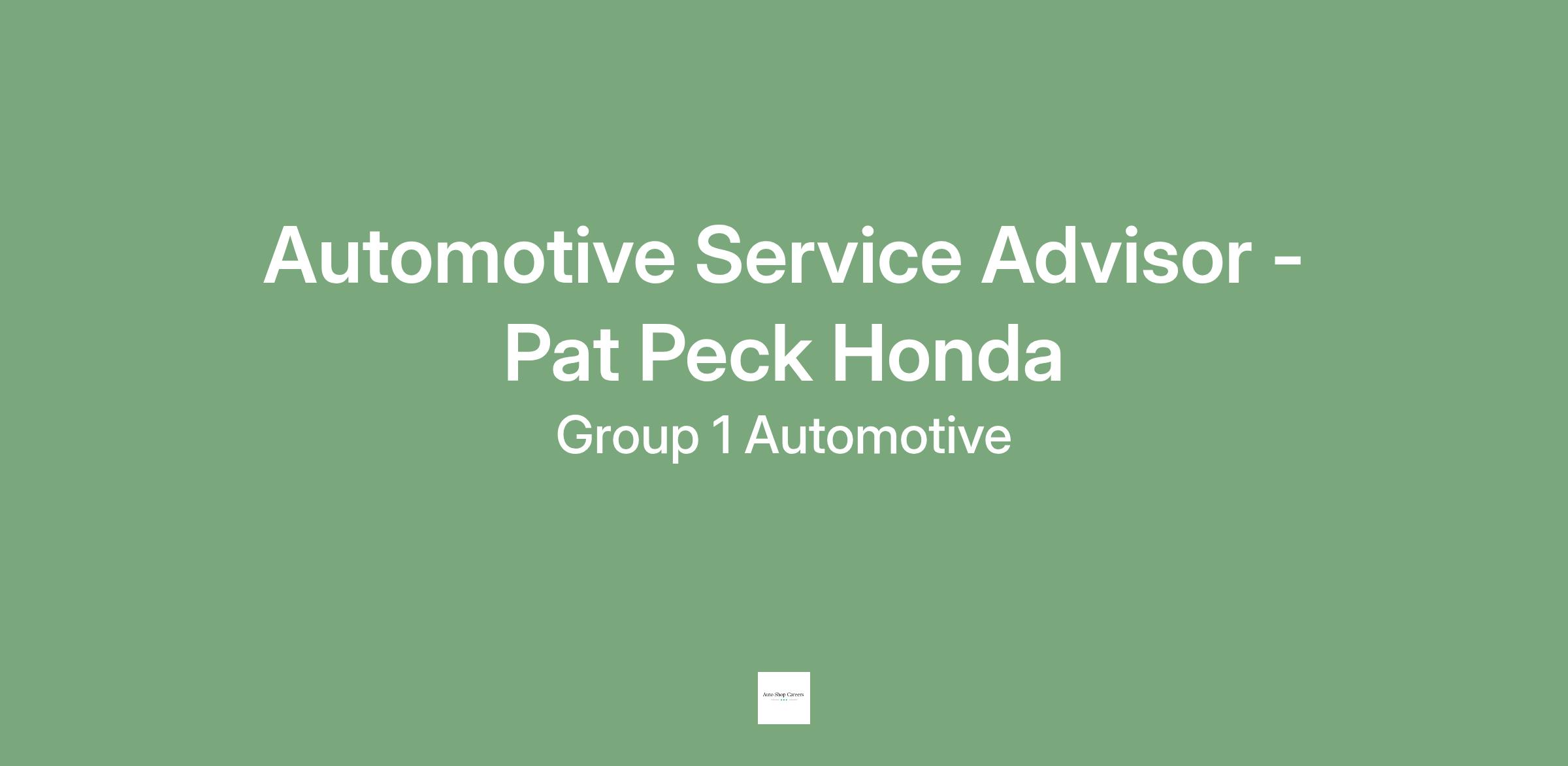 Pat Peck Honda is part of the fast growing Group 1 Automotive, a leader in automotive retail sales and service. We are growing and looking for Quality, Experienced Automotive Service Advisors to work with our Quality Dealership representing a Quality Product! Our Service Advisor should be passionate about customer service and enjoy interacting with people throughout the working day.