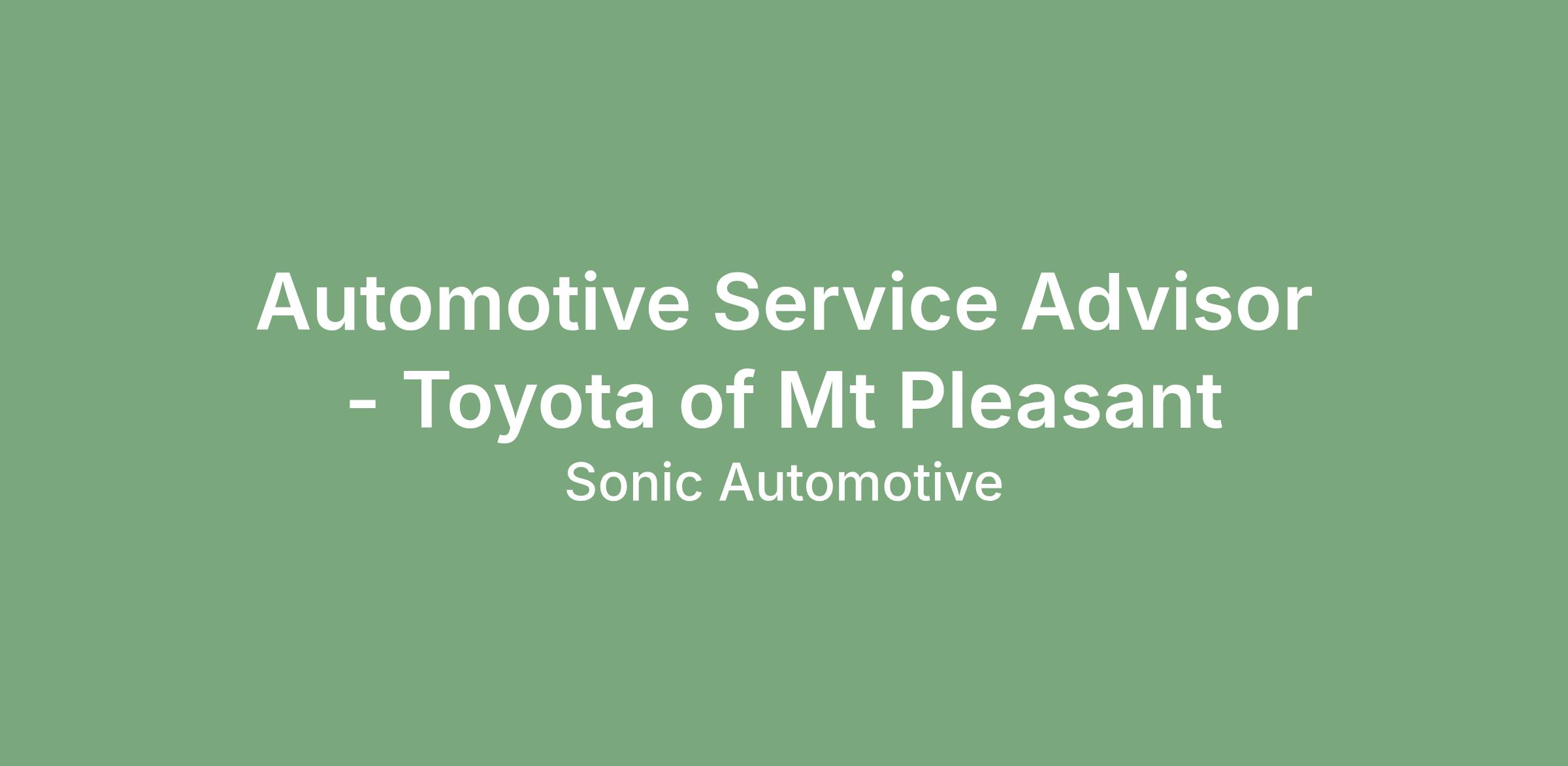 At Toyota of Mt Pleasant, a Sonic Automotive family dealership, you'll find the opportunities, resources, and support you need to grow and develop professionally. So read on, and consider a rewarding career with Sonic Automotive, Inc.