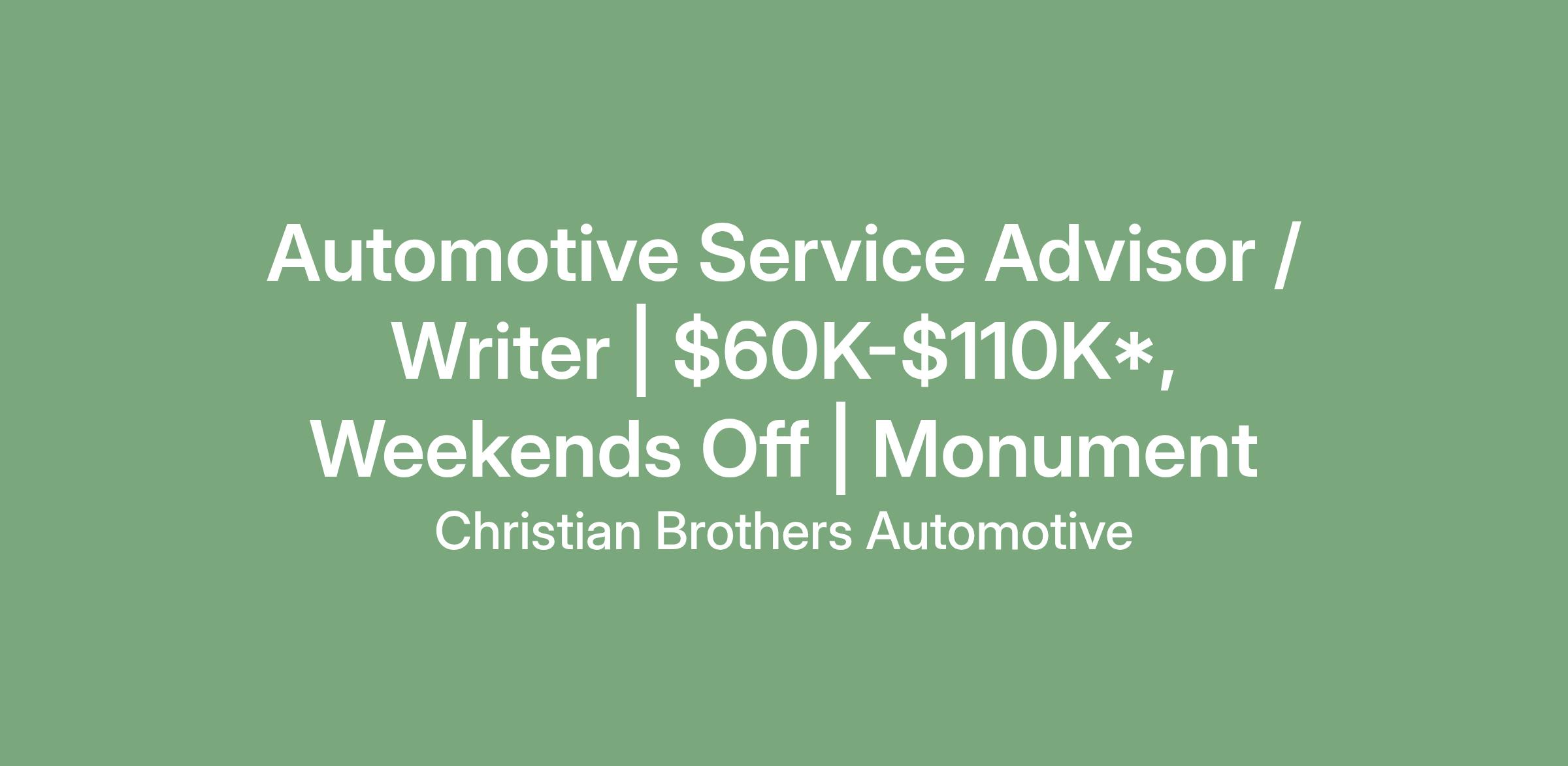 As an Automotive Service Advisor/Writer with Christian Brothers Automotive, you are the trusted professional our guests rely on for assistance with their vehicles. Your role is crucial in building lasting relationships, as you are the face they see every time they invest in their vehicle.