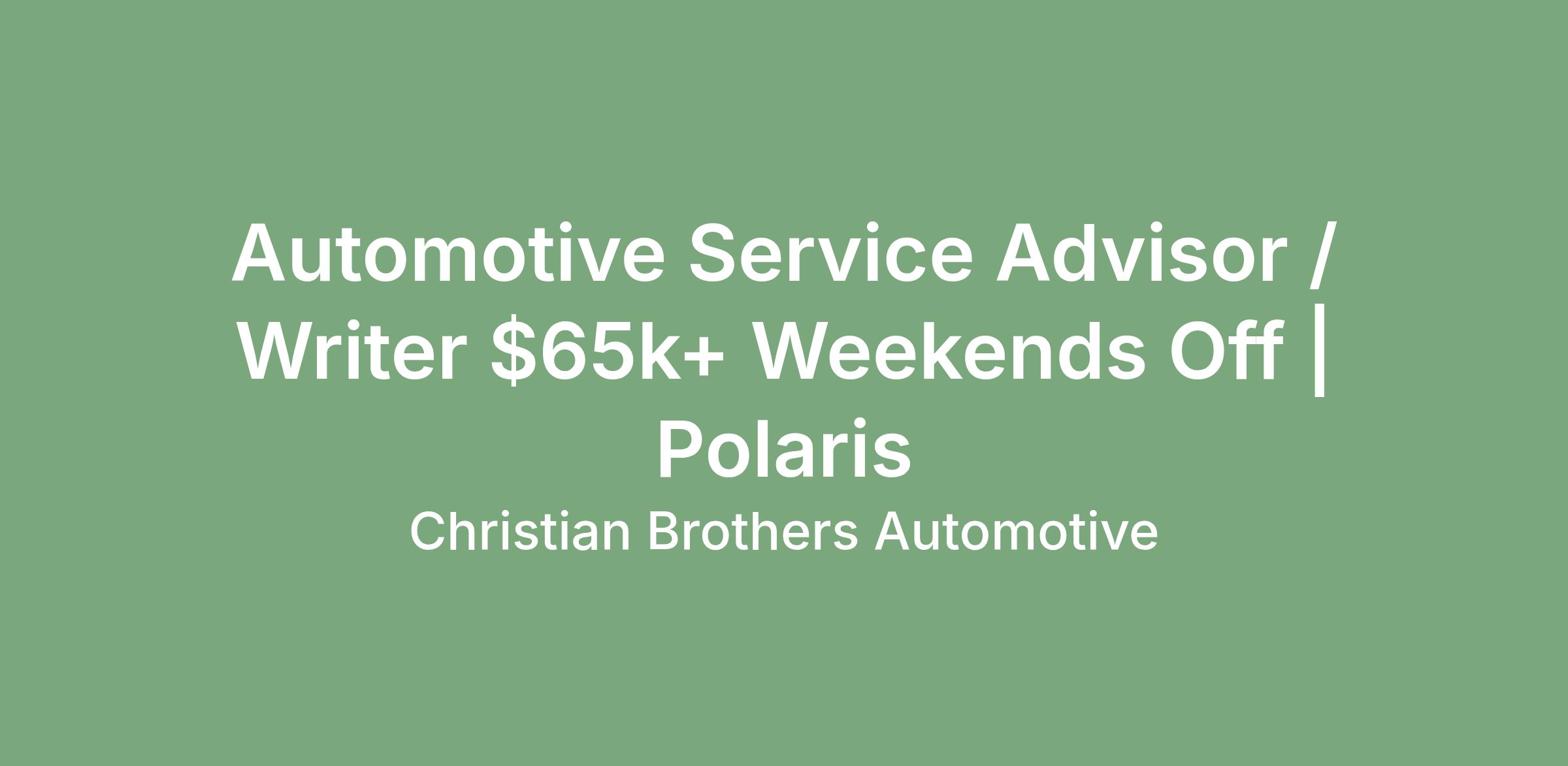 As an Automotive Service Advisor / Writer with Christian Brothers Automotive, you are the person that our customers look to when they need help with their vehicle. You are the person that our customers see every time they make an investment into their vehicle, because of these reasons you play a large role in building relationships with our customers.