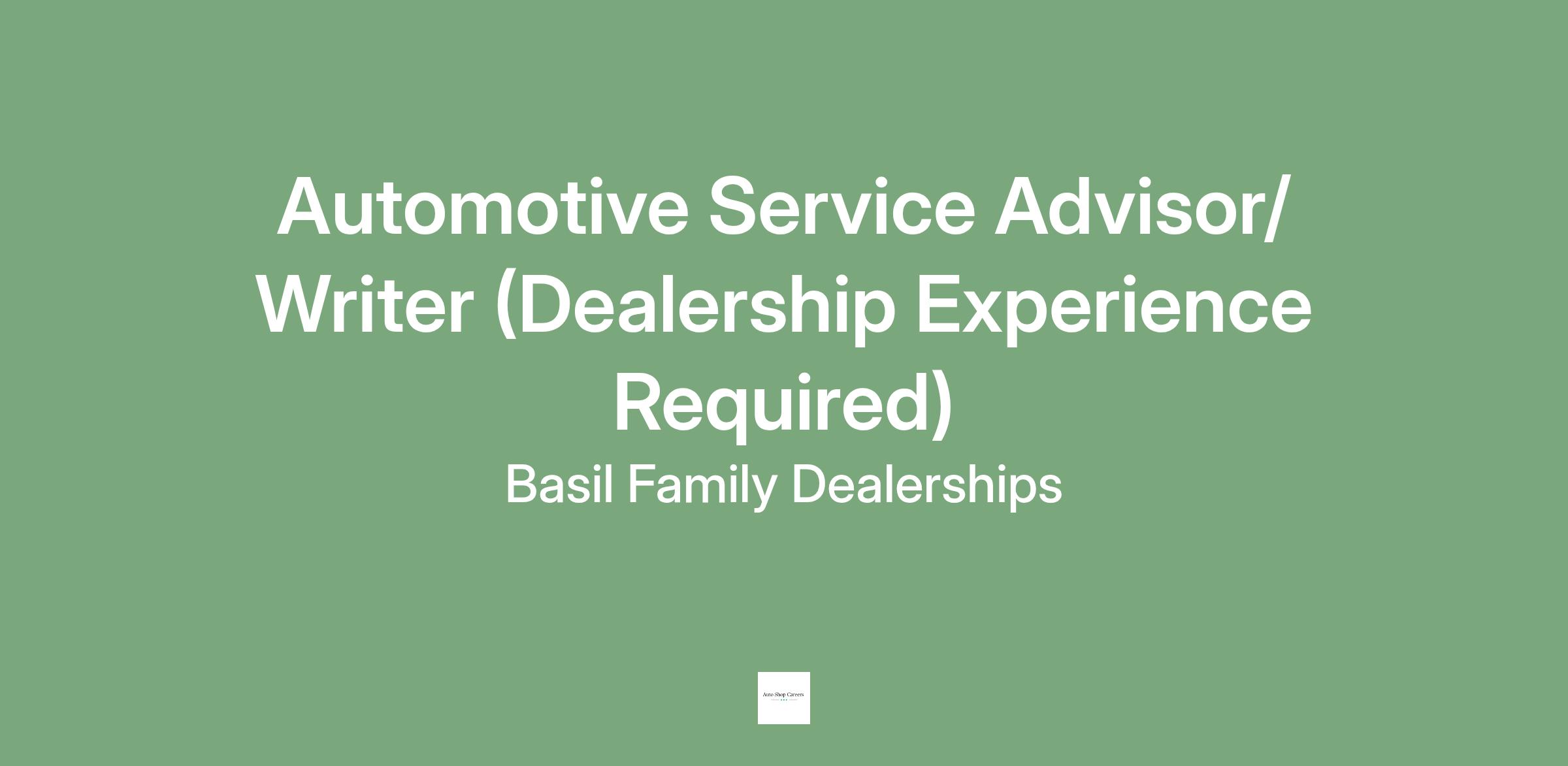 Basil Family Dealerships is looking for experienced Service Advisors to join our family-like work environment! As a Service Advisor you are the liaison between the customer and the technician. This customer facing position is a great opportunity to further your career in the automotive industry while earning the pay you deserve and receiving awesome benefits! Come join the Basil family, a company that truly cares and appreciates their team! Apply Today!