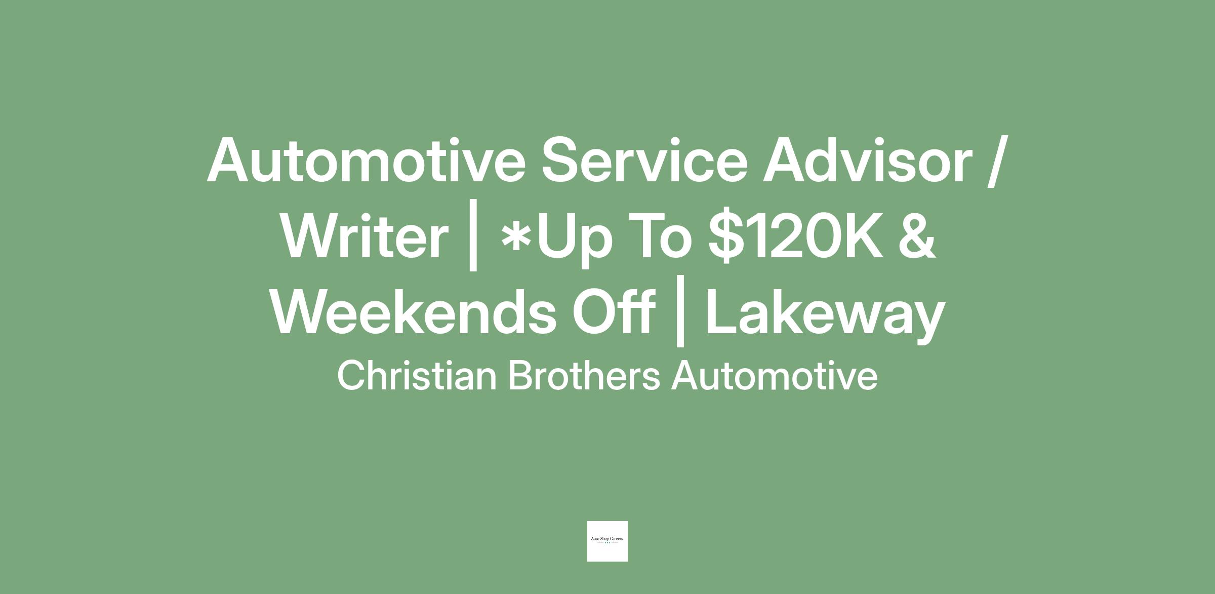 As an Automotive Service Advisor / Writer with Christian Brothers Automotive, you are the person that our guests look to when they need help with their vehicle. You are the person that our guests see every time they make an investment into their vehicle, because of these reasons you play a large role in building relationships with our guests.