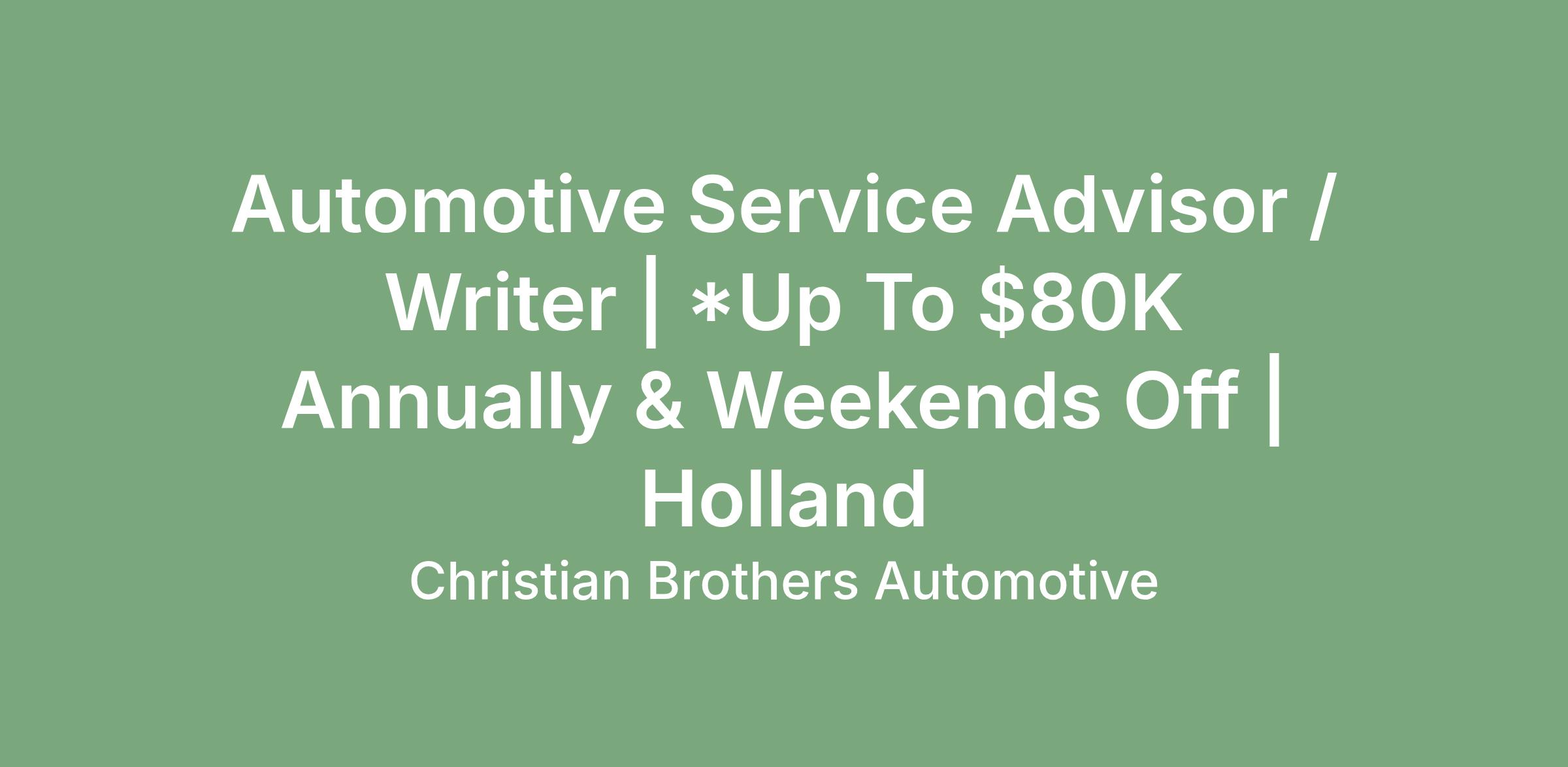 As an Automotive Service Advisor / Writer with Christian Brothers Automotive, you are the person that our guests look to when they need help with their vehicle. You are the person that our guests see every time they make an investment into their vehicle, because of these reasons you play a large role in building relationships with our customers.