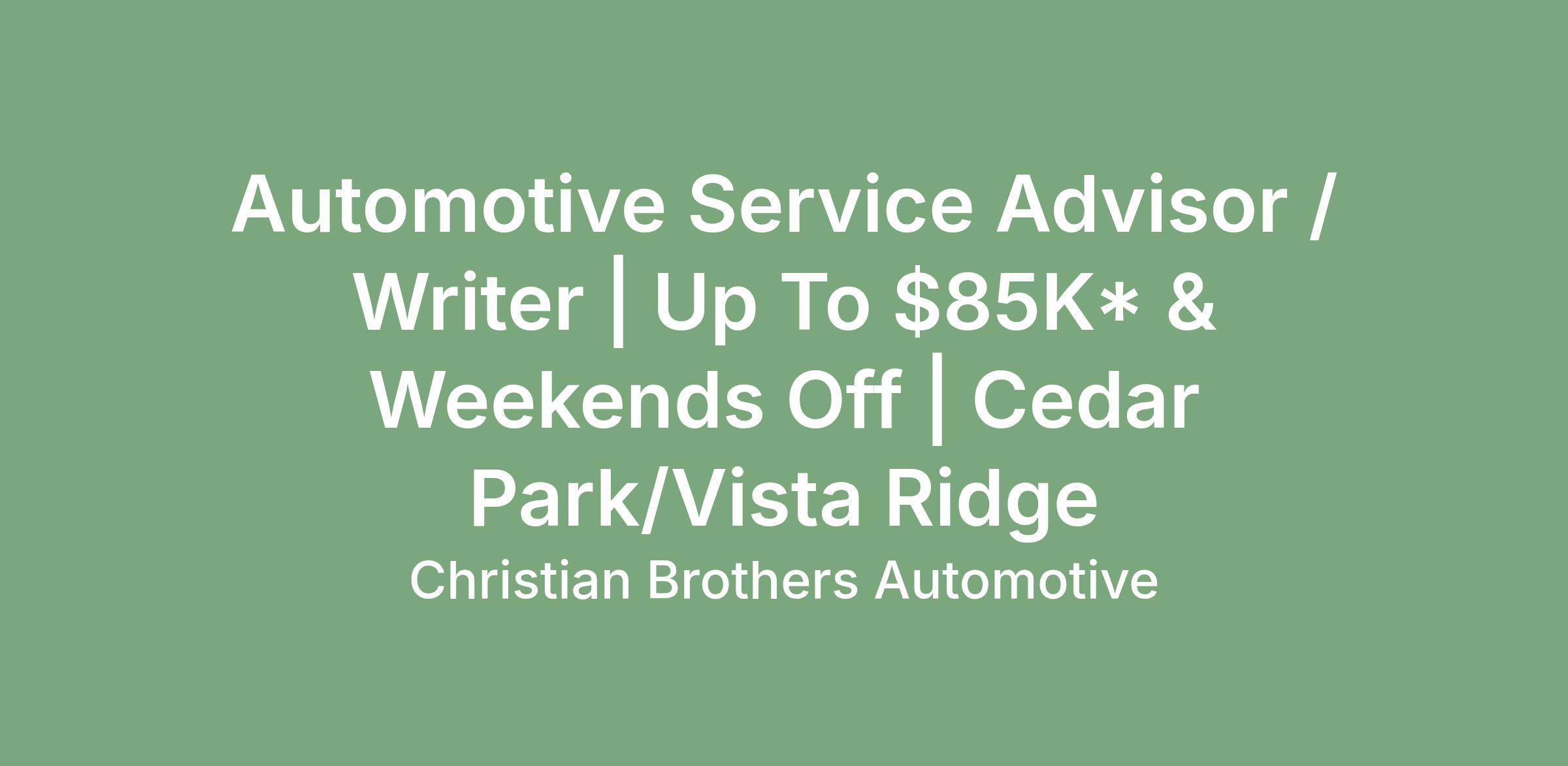 As an Automotive Service Advisor / Writer with Christian Brothers Automotive, you are the person that our guests look to when they need help with their vehicle. You are the person that our guests see every time they make an investment into their vehicle, because of these reasons you play a large role in building relationships with our guests.
