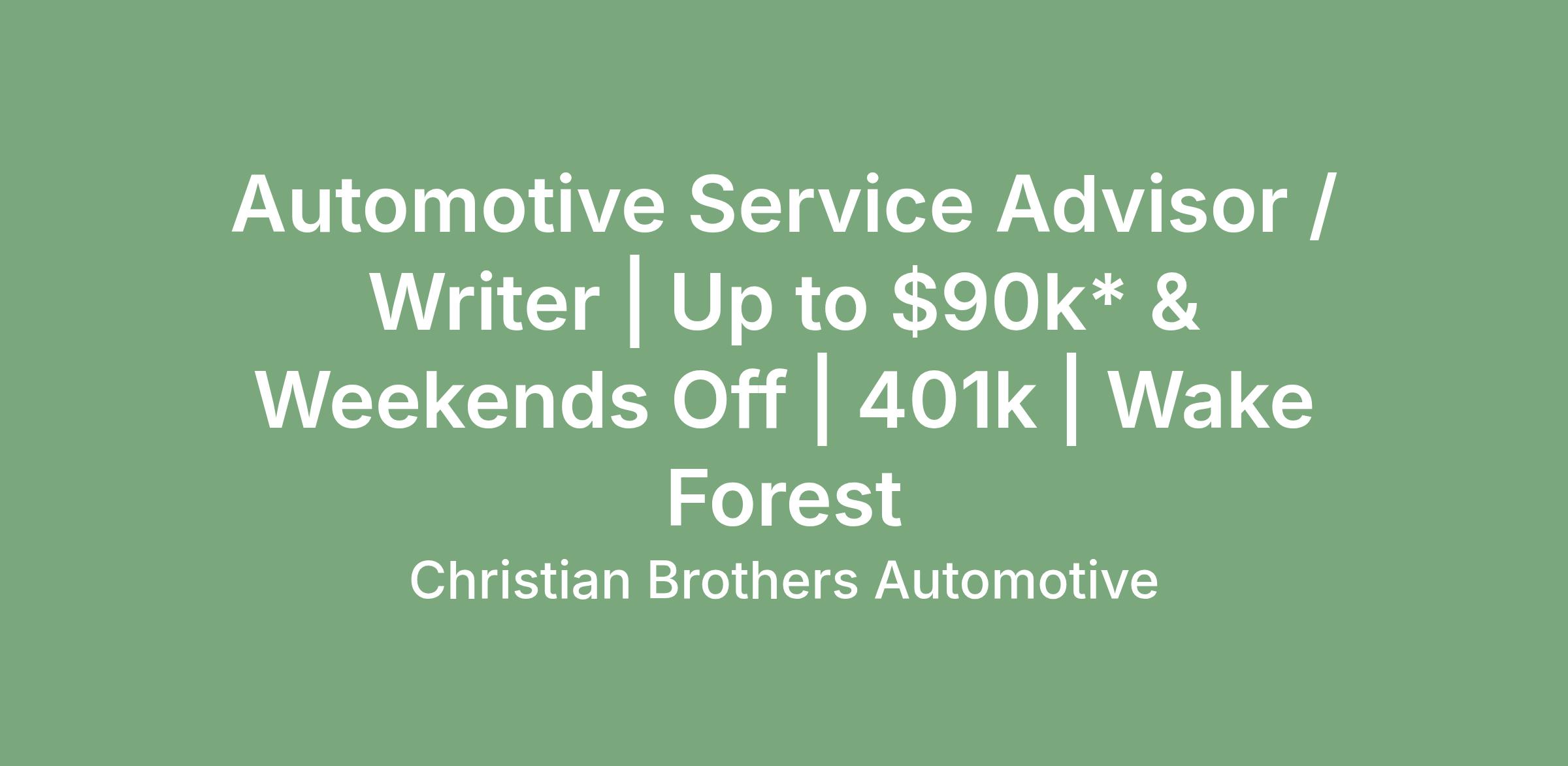 As an Automotive Service Advisor / Writer with Christian Brothers Automotive, you are the person that our guests look to when they need help with their vehicle. You are the person that our guests see every time they make an investment into their vehicle, because of these reasons you play a large role in building relationships with our guests.