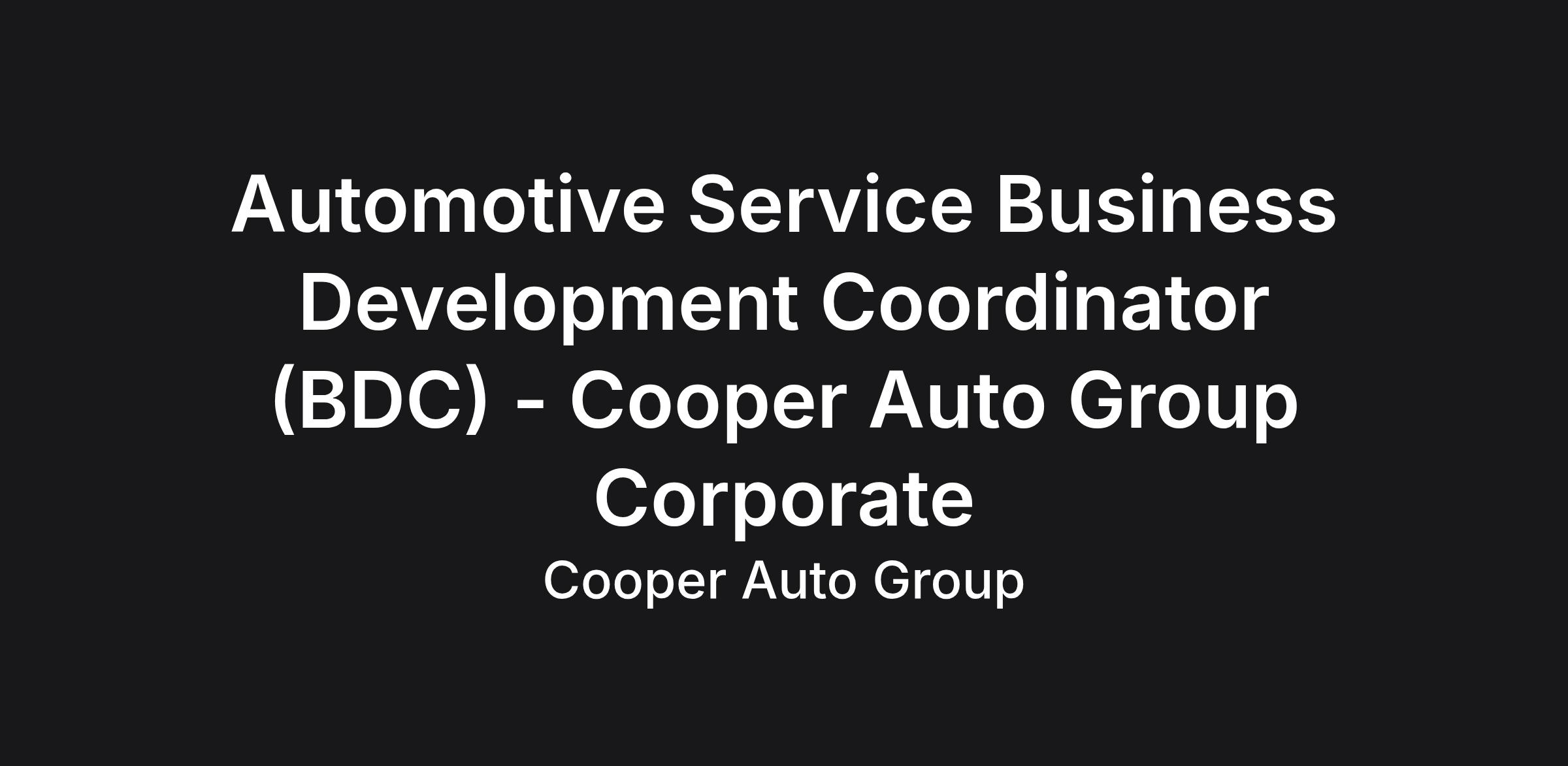 Cooper Auto Group is an Equal Opportunity Employer that recruits and hires qualified candidates without regard to race, religion, sex, sexual orientation, gender identity, age, national origin, ancestry, citizenship, disability, or veteran status.