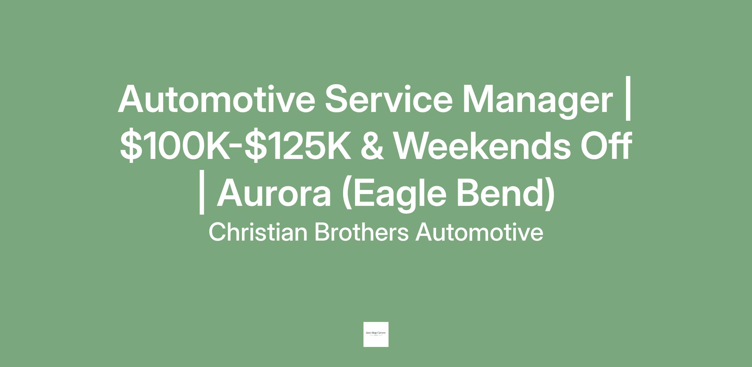 As a Service Manager with Christian Brothers Automotive, you are the person that our customers look to when they need help with their vehicle. You are the person that our customers see every time they make an investment into their vehicle, because of these reasons you play a large role in building relationships with our customers. Our Service Managers have the responsibility of taking our customer through the entire repair process, keeping them informed on the status of their vehicle and ensuring their satisfaction before they leave our facility.