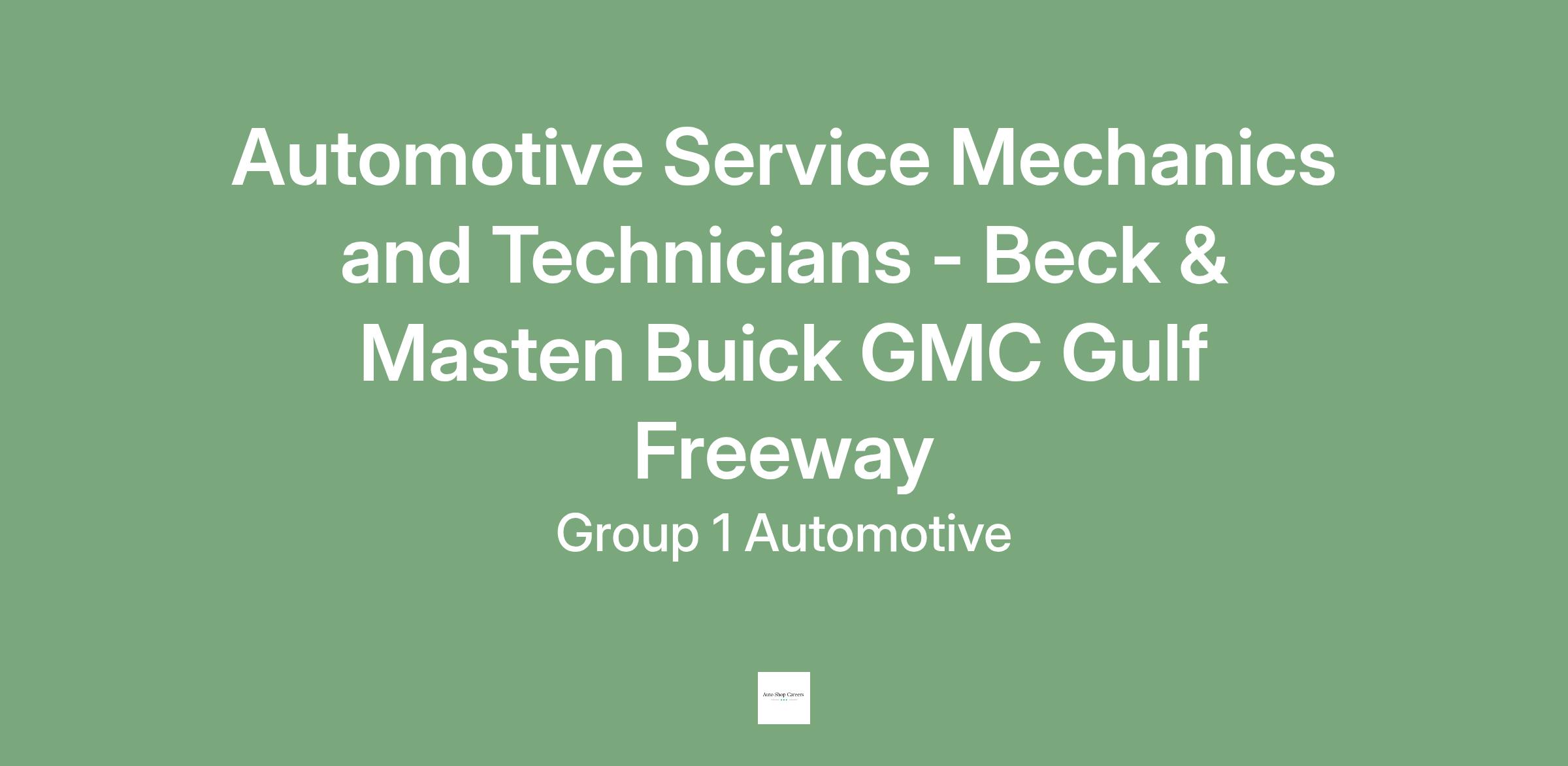 Beck & Masten Buick GMC Gulf Freeway is part of the fast growing Group 1 Automotive, a leader in automotive retail and service. We are growing and looking for Quality Automotive Service Technicians, from Experienced Flag Techs to Entry Level to join our Quality Buick GMC Dealership! Our Service Technicians are passionate about customer service, take pride in their work, an enjoy being part of a winning team that cares about their employees.