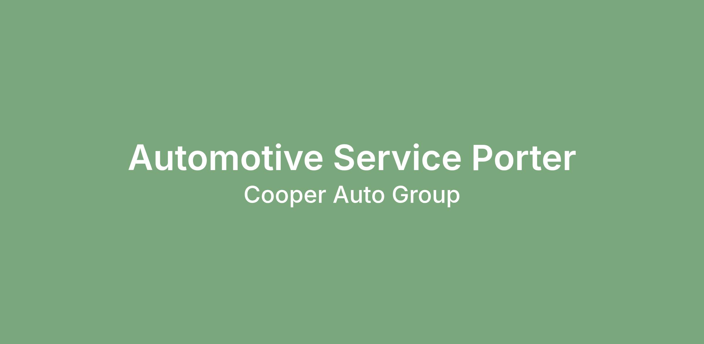 The Service Porter helps ensure complete customer satisfaction by moving vehicles in and around the service area/lot, maintaining the cleanliness of vehicles and the service area, delivering vehicles to customers after service is complete, and transporting customers to/from their home when needed.