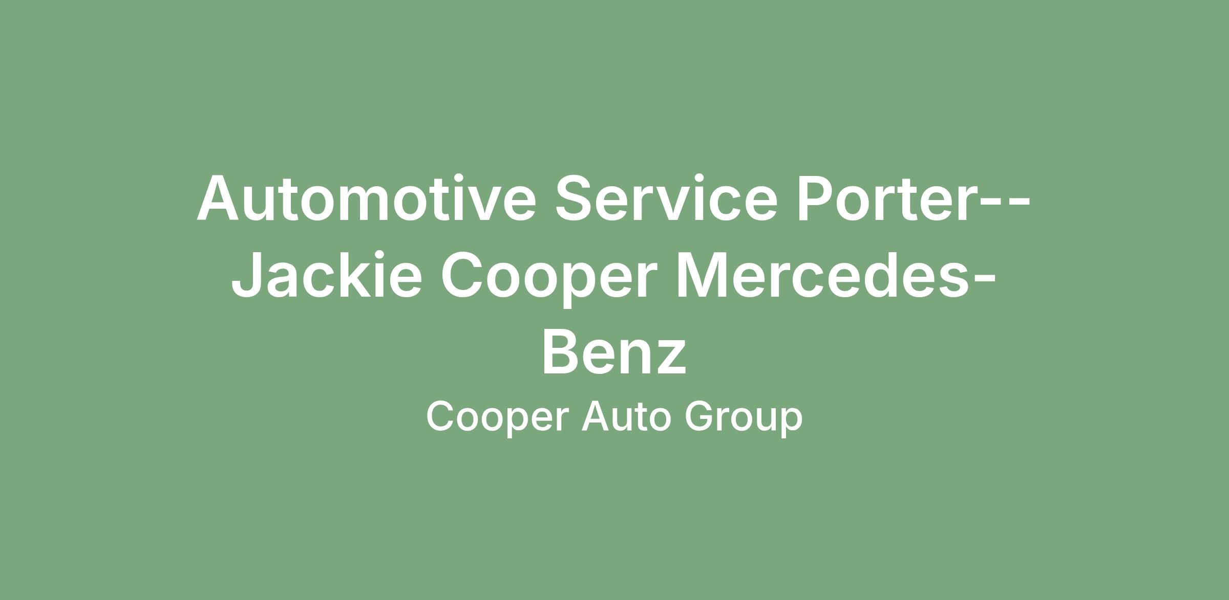 Jackie Cooper Mercedes-Benz is currently looking to hire exceptional people who desire a career path in the automotive dealership industry. One of our entry-level positions is the Automotive Service Porter. The Service Porter position helps ensure complete customer satisfaction by moving vehicles in and around the service area/lot, maintaining the cleanliness of vehicles and the service drive and customer areas. Additional tasks related to service porter are: delivering vehicles to customers after service, and transporting customers to/from their home when needed. This position is fun, stress-free, and allows the team member to work with and have access to other roles inside the service department. We believe in hiring from within, and this position is a great start to your career in Automotive Service.