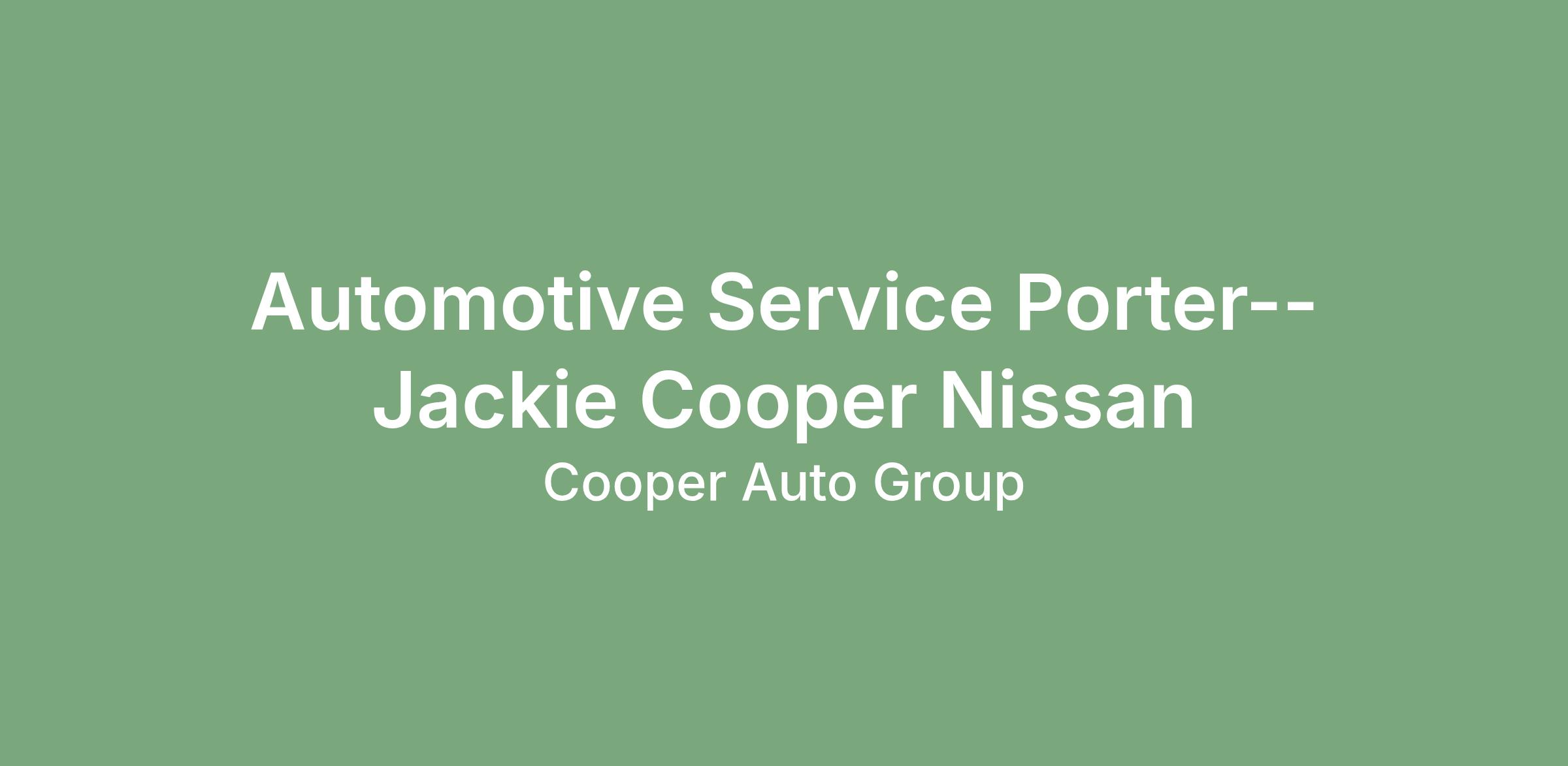Jackie Cooper Nissan is currently looking to hire exceptional people who desire a career path in the automotive dealership industry. One of our entry-level positions is the Automotive Service Porter. The Service Porter position helps ensure complete customer satisfaction by moving vehicles in and around the service area/lot, maintaining the cleanliness of vehicles and the service drive and customer areas. Additional tasks related to service porter are: delivering vehicles to customers after service, and transporting customers to/from their home when needed. This position is fun, stress-free, and allows the team member to work with and have access to other roles inside the service department. We believe in hiring from within, and this position is a great start to your career in Automotive Service.