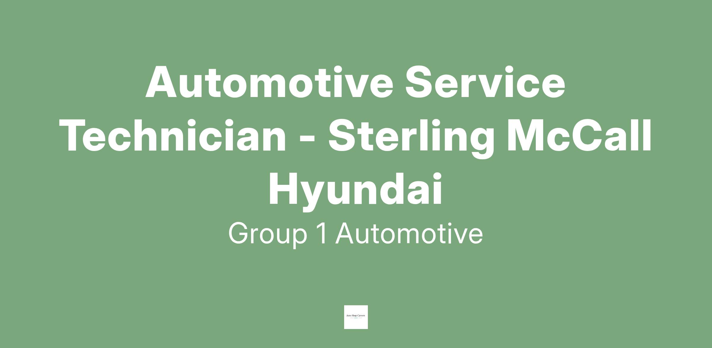 Sterling McCall Hyundai is part of Group 1 Automotive, a leader in automotive retail and quality service. We are looking to add Automotive Service Technicians to our growing team. Apply now to start your career at our renovated service facility and assist with servicing our Hyundai Customers.