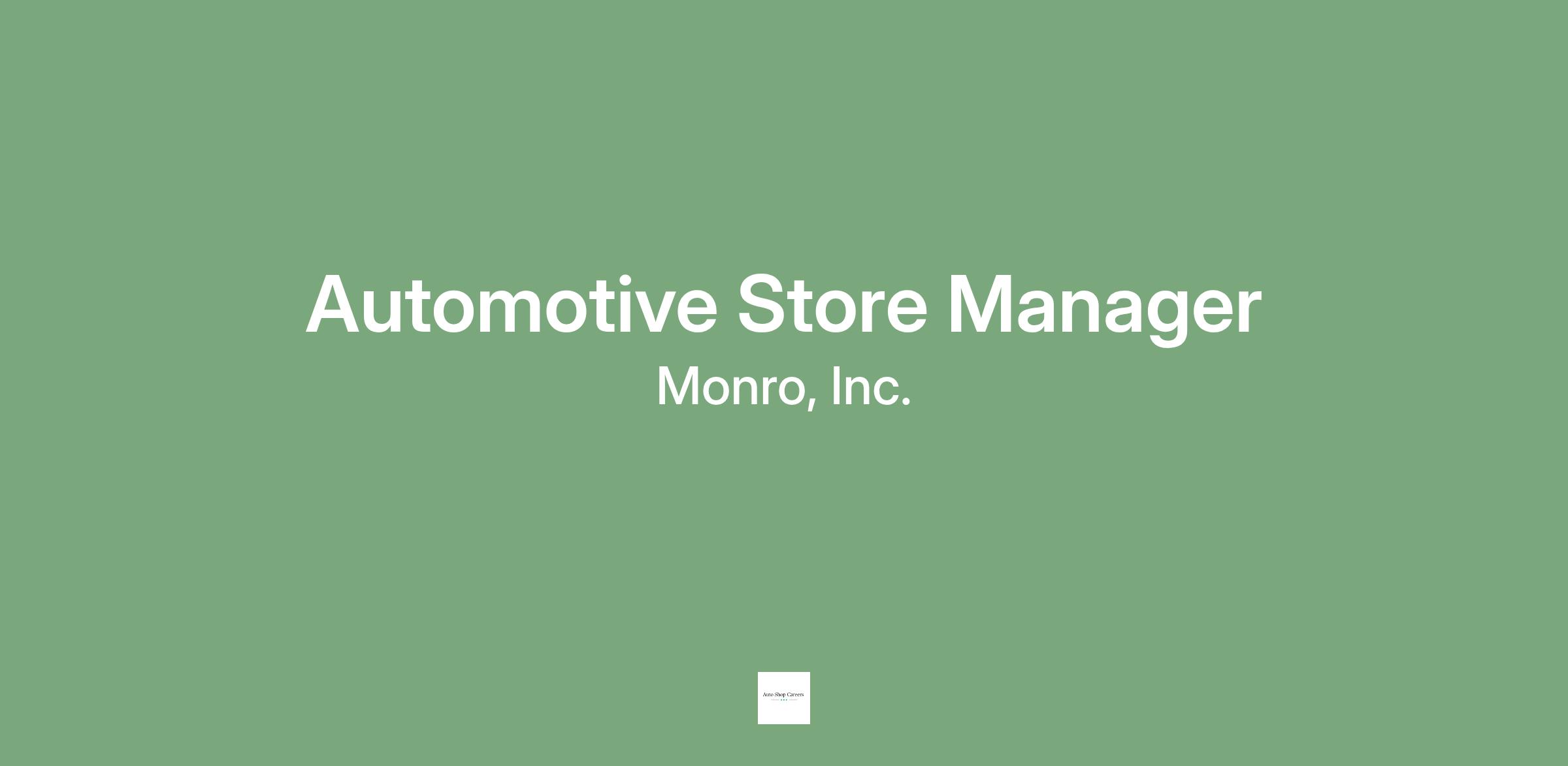 The Store Manager position is a salaried role. The Store Manager provides daily leadership to all positions within the store to include General Service Technicians, Technicians, Guest Care Specialists, and Assistant Store Manager. Reporting to the District Manager, the Store Manager is responsible for providing the day-to-day leadership to the store and teammates, including selecting, coaching, and developing store teammates. This position supports Monro’s vision to be America’s leading auto and service tire service centers, trusted by our guests as the best place in their neighborhoods for quality automotive service and tires by promoting products and services to guests.