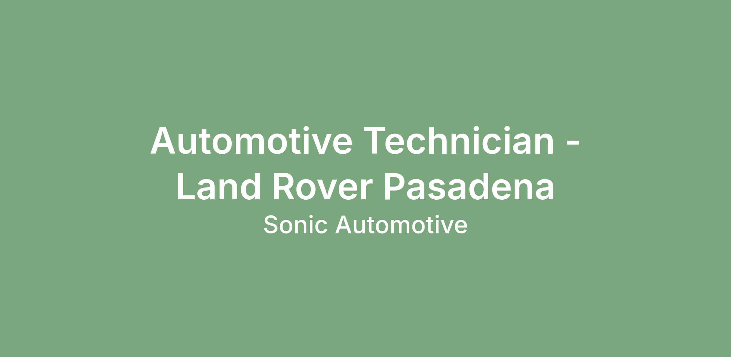 Automotive Technician - Land Rover Pasadena
