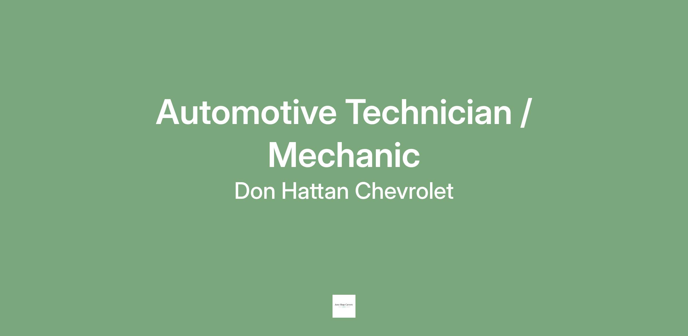Tired of working weekends? Looking for a shop with a great environment that respects your time and your talent? Join the team at Don Hattan Chevrolet —where skilled technicians come to consistently flag hours, stay cool, and earn top pay in a professional, fully air-conditioned, high-volume environment.