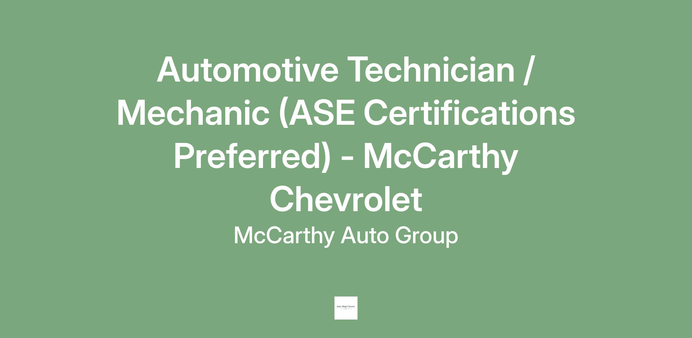 - Automotive Service Excellence (ASE) certification preferred