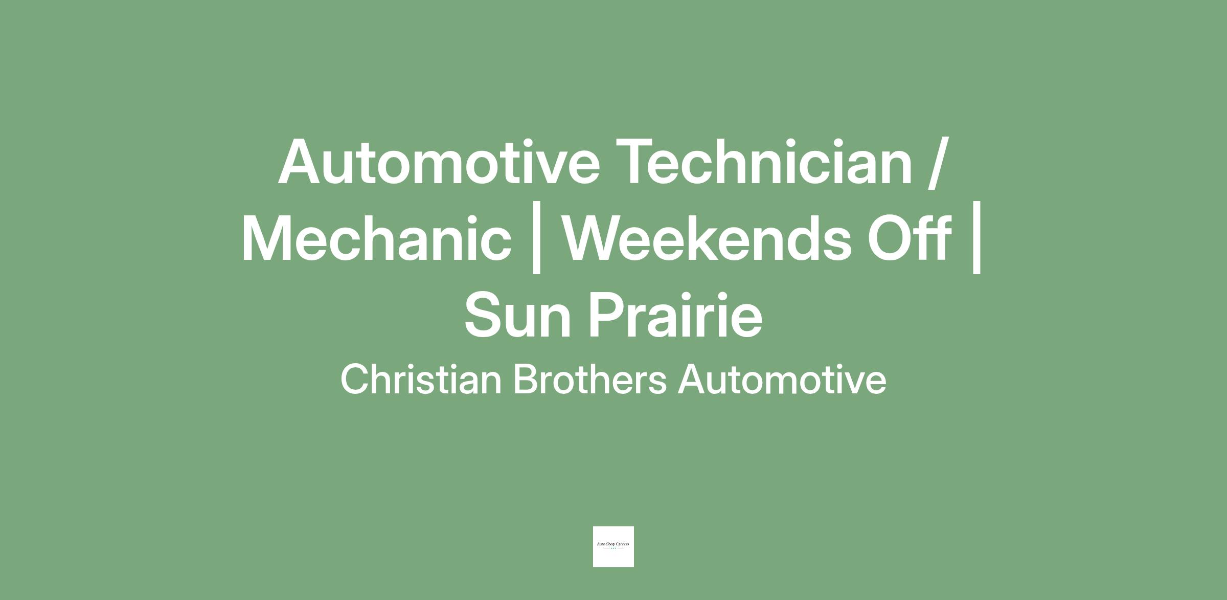 Join Our Team at Christian Brothers Automotive in Sun Prairie, WI! We’re seeking a skilled automotive technician to help us continue our tradition of excellence as one of our valued team members prepares for retirement. At Christian Brothers Automotive, we pride ourselves on a positive work culture and opportunities for career growth, all while making a difference in our community. If you’re ready to be part of a supportive team and drive the future of the automotive industry, we’d love to show you around our shop. Apply today and start your next adventure with us!
