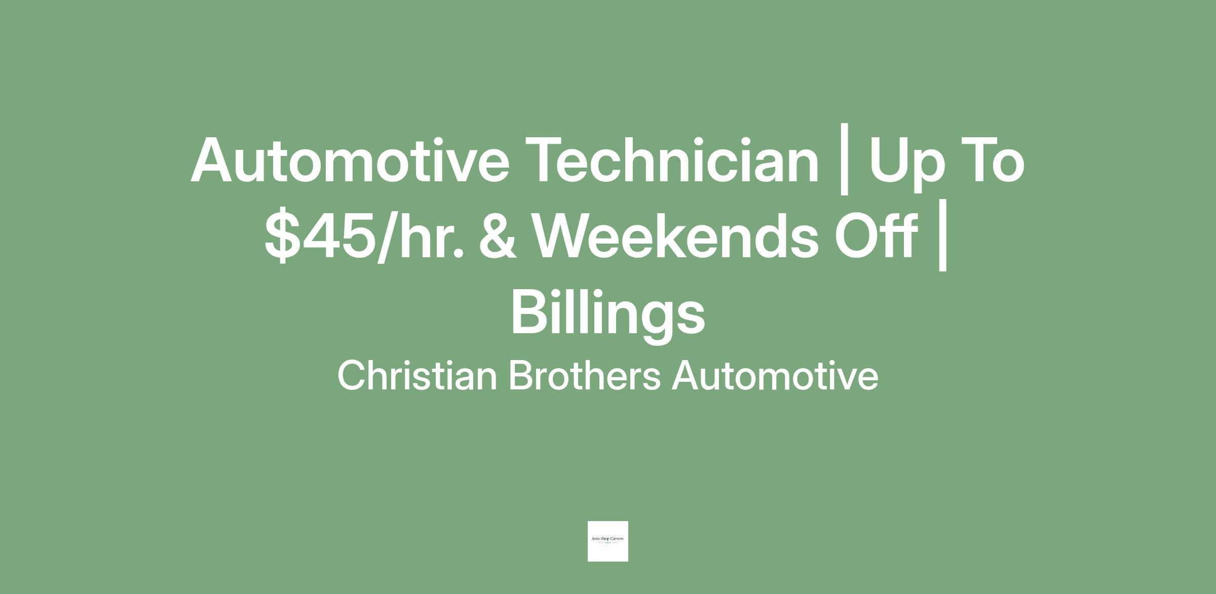 Thank you for viewing this opportunity! This job posting is for an opening at a Christian Brothers Automotive location that is independently owned and operated by a local licensed franchisee. Your application and any information included with it will be submitted to the franchisee for further handling. Christian Brothers Automotive Corporation ("CBAC") is a separate business entity. No CBAC employee will be involved in any decisions regarding your employment application. If you are hired for this position, you also understand and acknowledge that the local franchisee will be your employer and that CBAC will not be your employer. The local franchisee is solely responsible for all decisions related to your employment, including hiring, firing, discipline, compensation, scheduling and supervision.