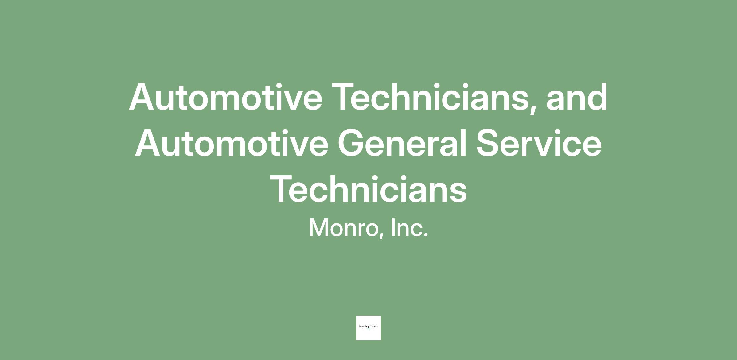 Monro, Inc. is an equal opportunity employer and affords equal opportunity to all applicants for all positions without regard to race, color, religion, sex, national origin, disability status, protected veteran status, or any other characteristic protected by law.