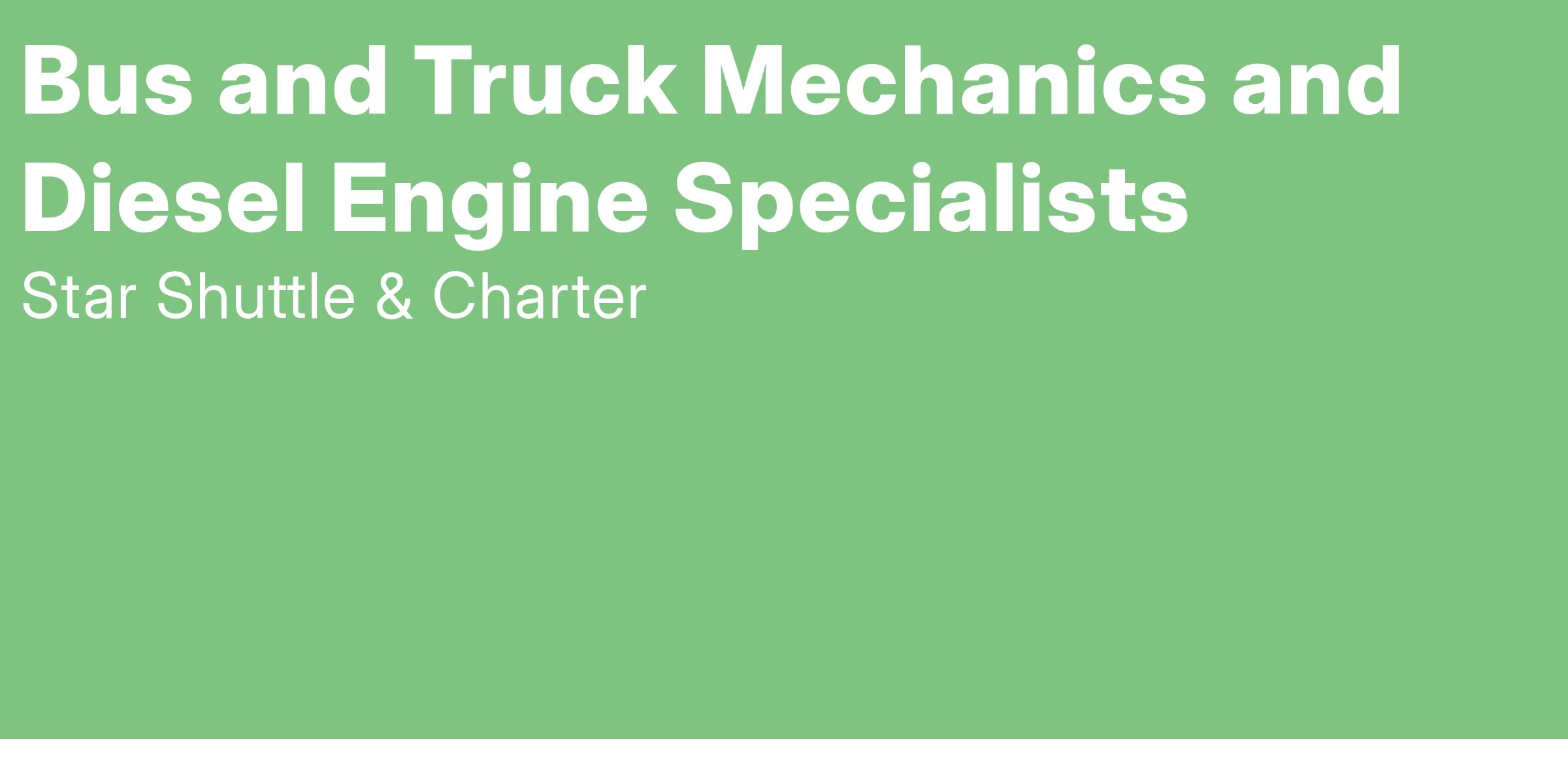 Diagnose, adjust, repair, or overhaul trucks, buses, and all types of diesel engines. Includes mechanics working