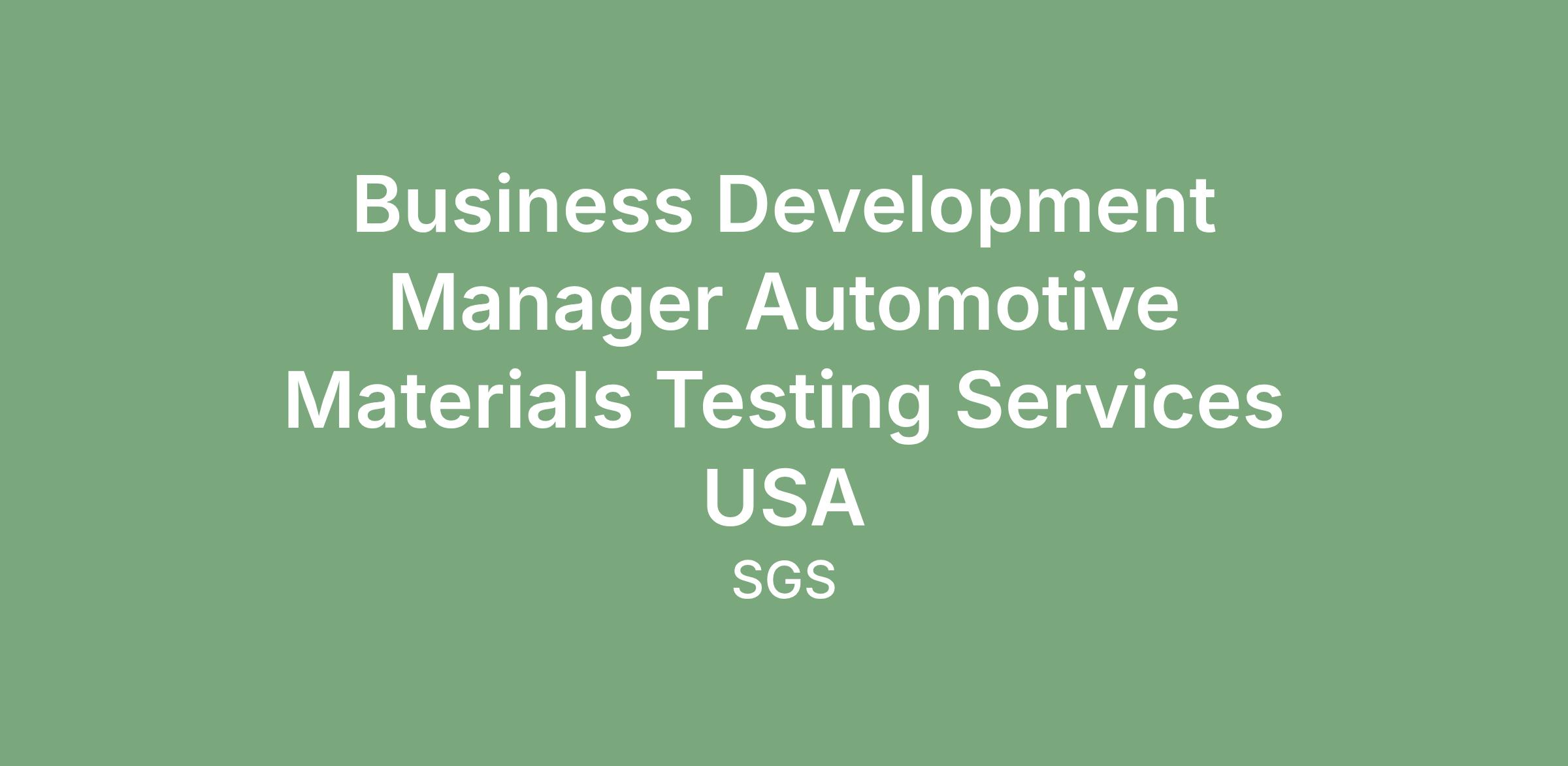 This position reports to VP Automotive and dotted line to Head of Automotive Materials Testing services.