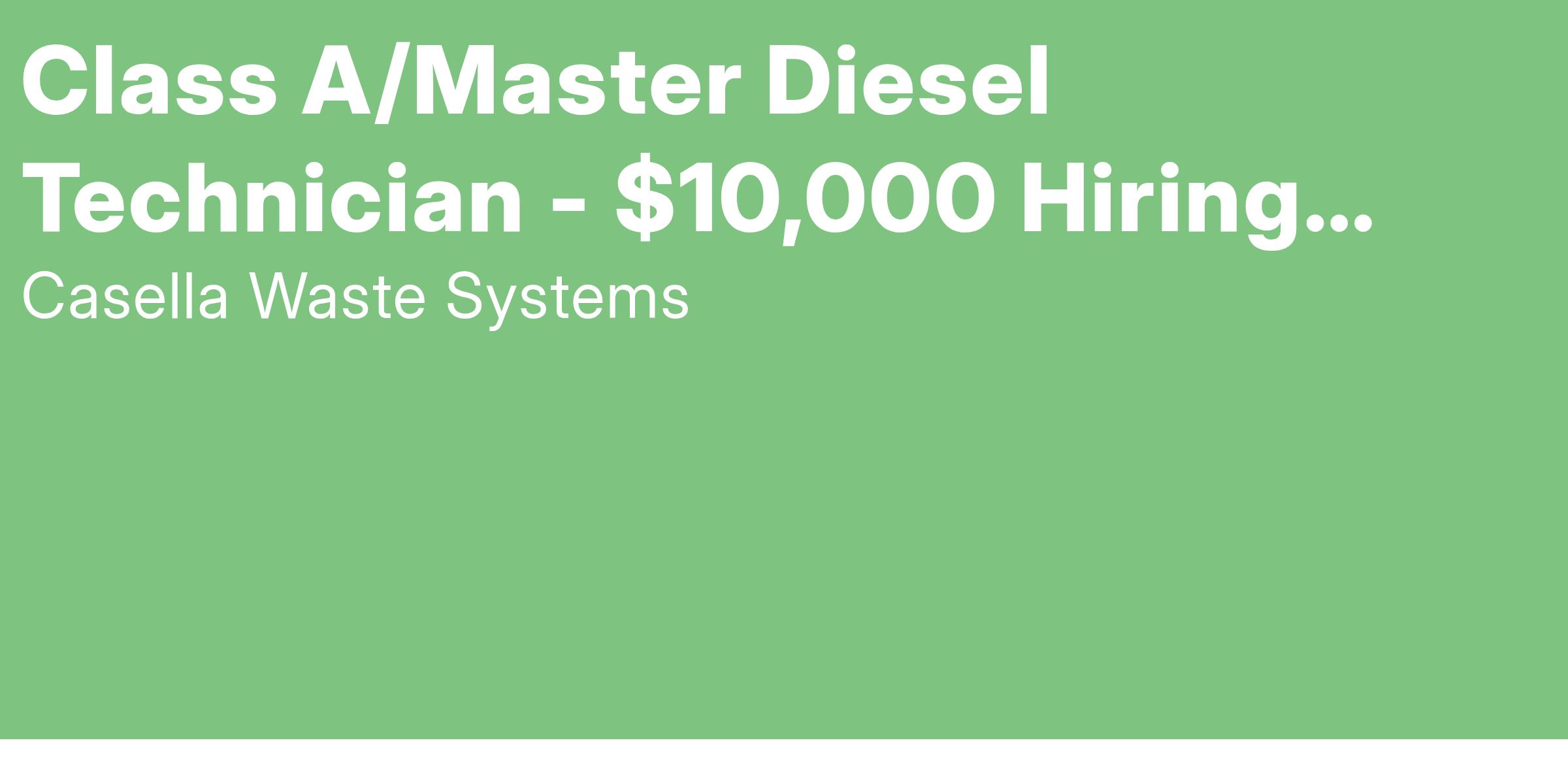 Technician Apprentice: Demonstrates the ability to work alongside a knowledgeable Casella Waste Diesel Technician to learn and further develop skills. The Apprentice provides maintenance, repairs vehicles and equipment, and mainly focuses on preventative maintenance and maintaining the safety of all vehicles and equipment.