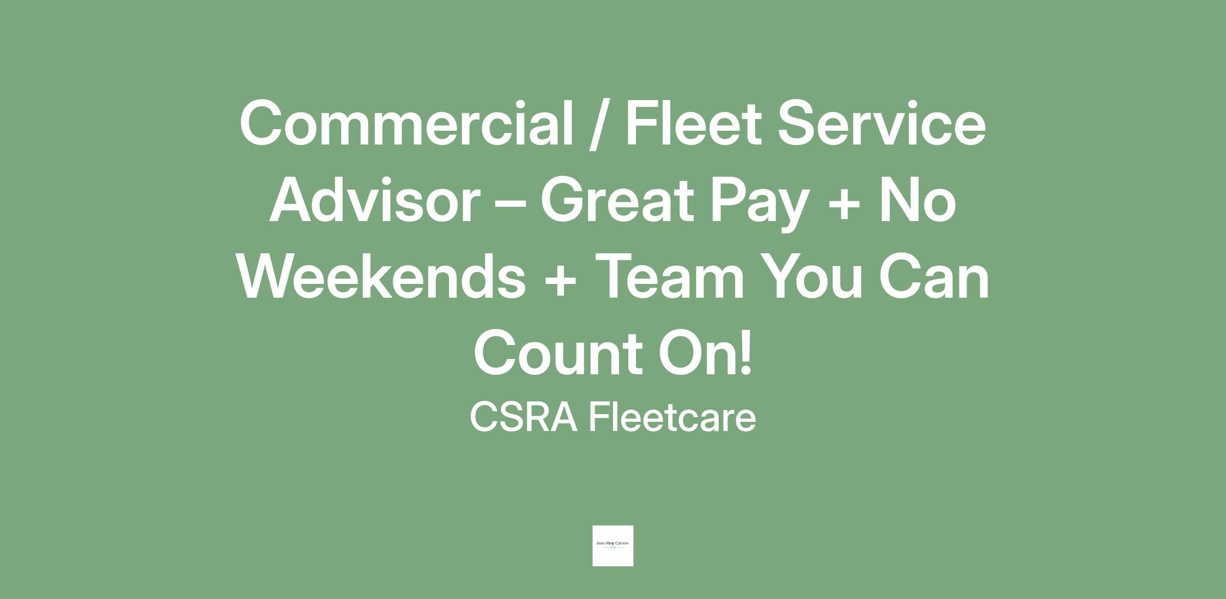 If you know how to keep fleet customers happy, technicians productive, and service bays moving — this is the place for you.
