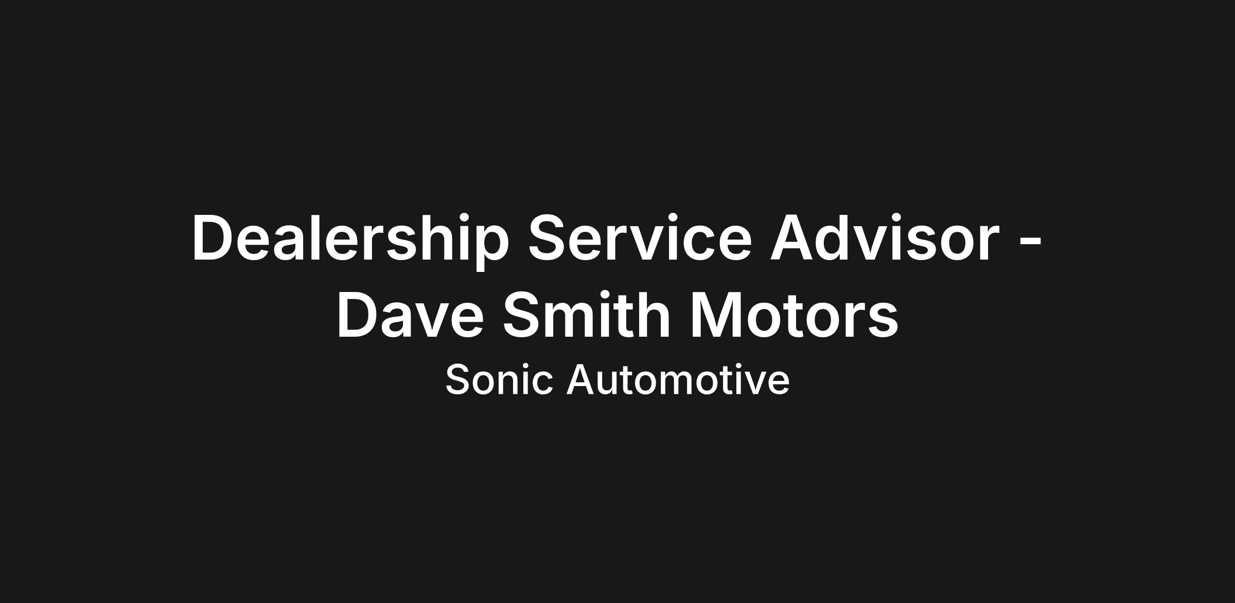 At Dave Smith Motors, a Sonic Automotive family dealership, you'll find the opportunities, resources, and support you need to grow and develop professionally. Our 100+ dealerships are concerned with more than moving inventory; they're committed to your success and invested in your future. So read on, and consider a rewarding career with Sonic Automotive, Inc.