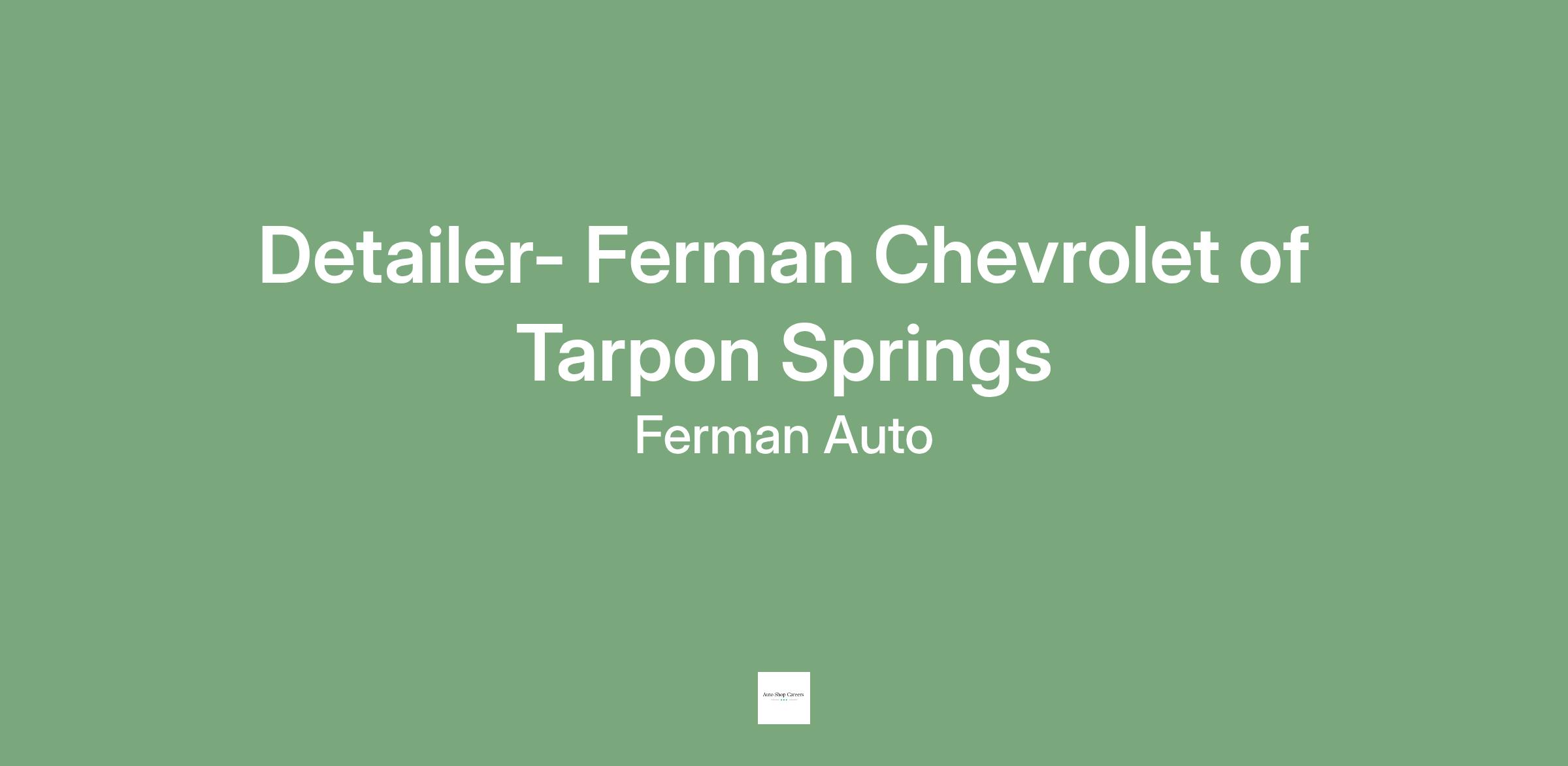 Ferman Chevrolet/Volvo of Tarpon Springs has immediate openings for full- time automotive detailers. We seek talented individuals with strong attention to detail and willingness to learn or have experience detailing vehicles. Excellent opportunity with growth potential at a large, 125+-year-old company. Must be 18 years of age or older, with a valid Florida driver's license and clean driving record. The ability to drive manual transmission is a plus.