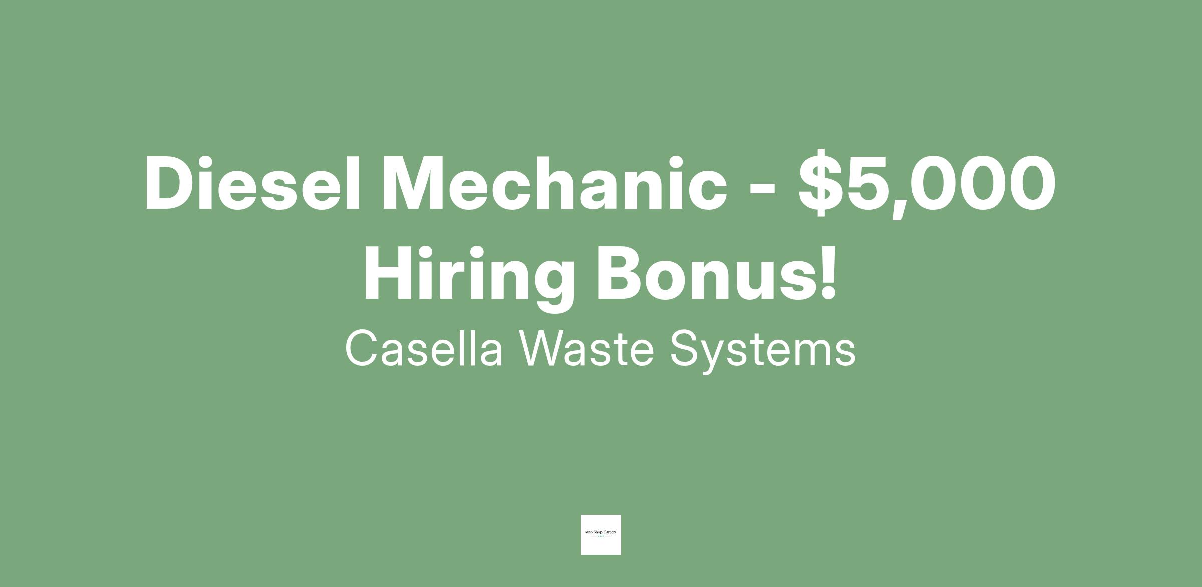 Mechanics at Casella participate in a Career Pathways Program that offers exceptional Advancement Opportunity, Regular Merit Increases, and Safety Bonus Incentives.