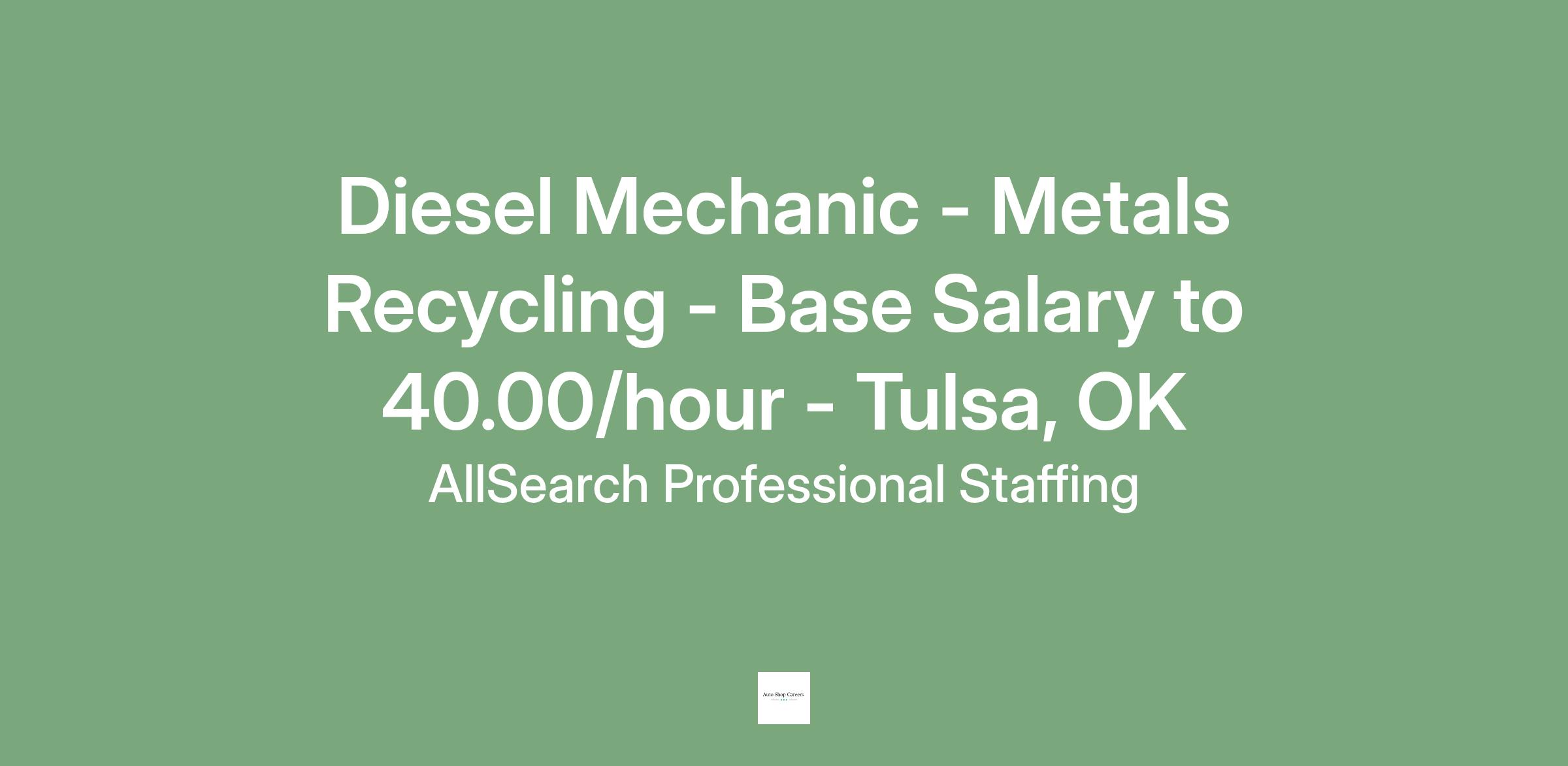 Diesel Mechanic - Metals Recycling - Base Salary to 40.00/hour - Tulsa, OK